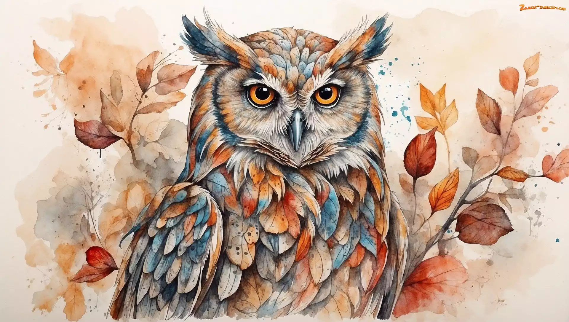Zdjęcie: Ptak, Sowa, Grafika, Liście