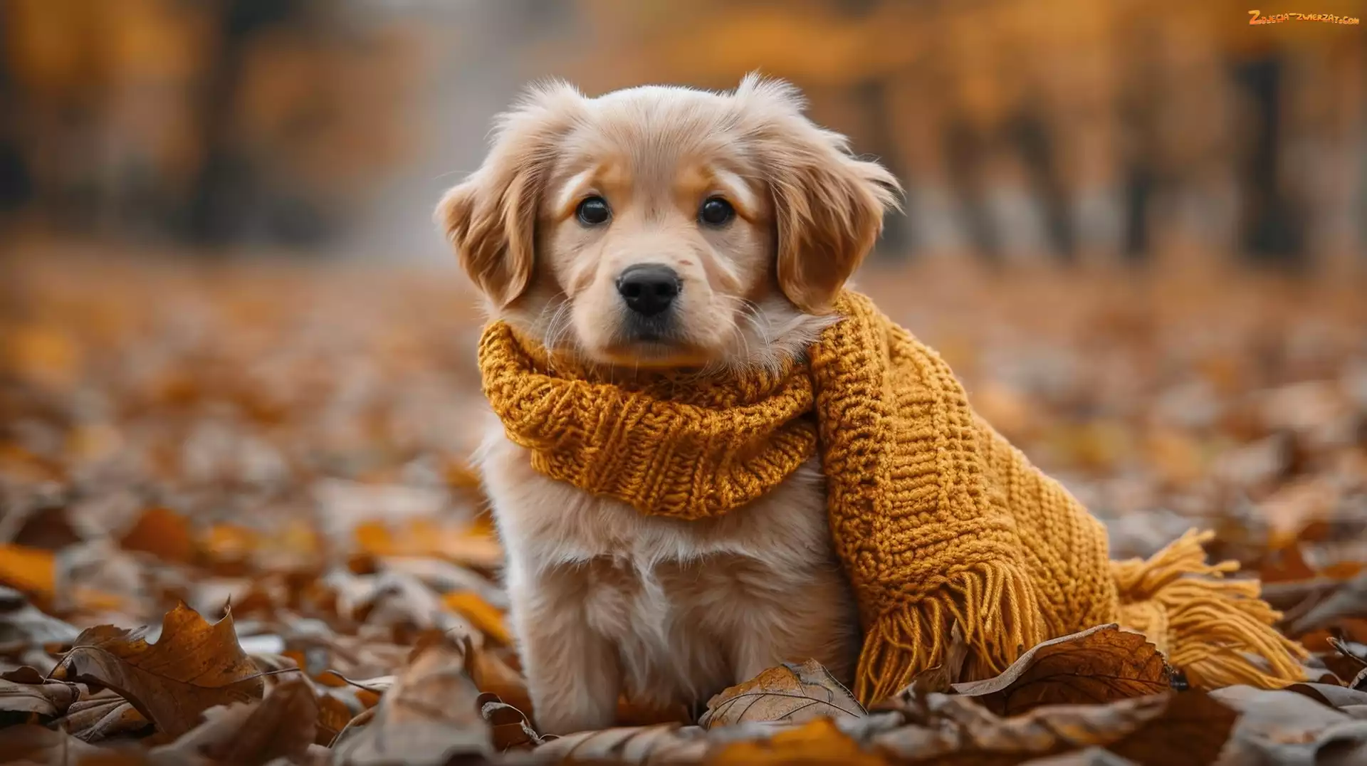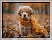 Zdjęcie: Wełniany, Pies, Szczeniak, Szalik, AI, Golden retriever, Liście