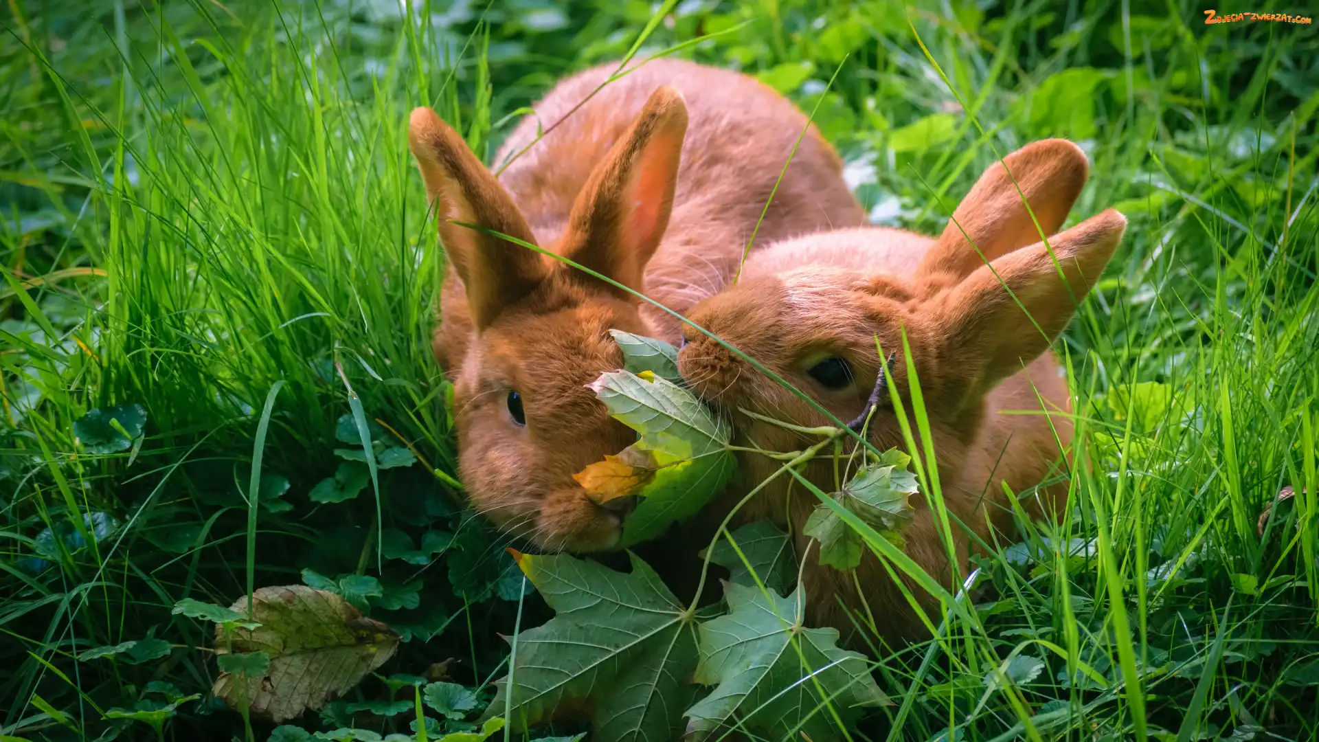 Zdjęcie: Liście, Króliki, Trawa, Dwa