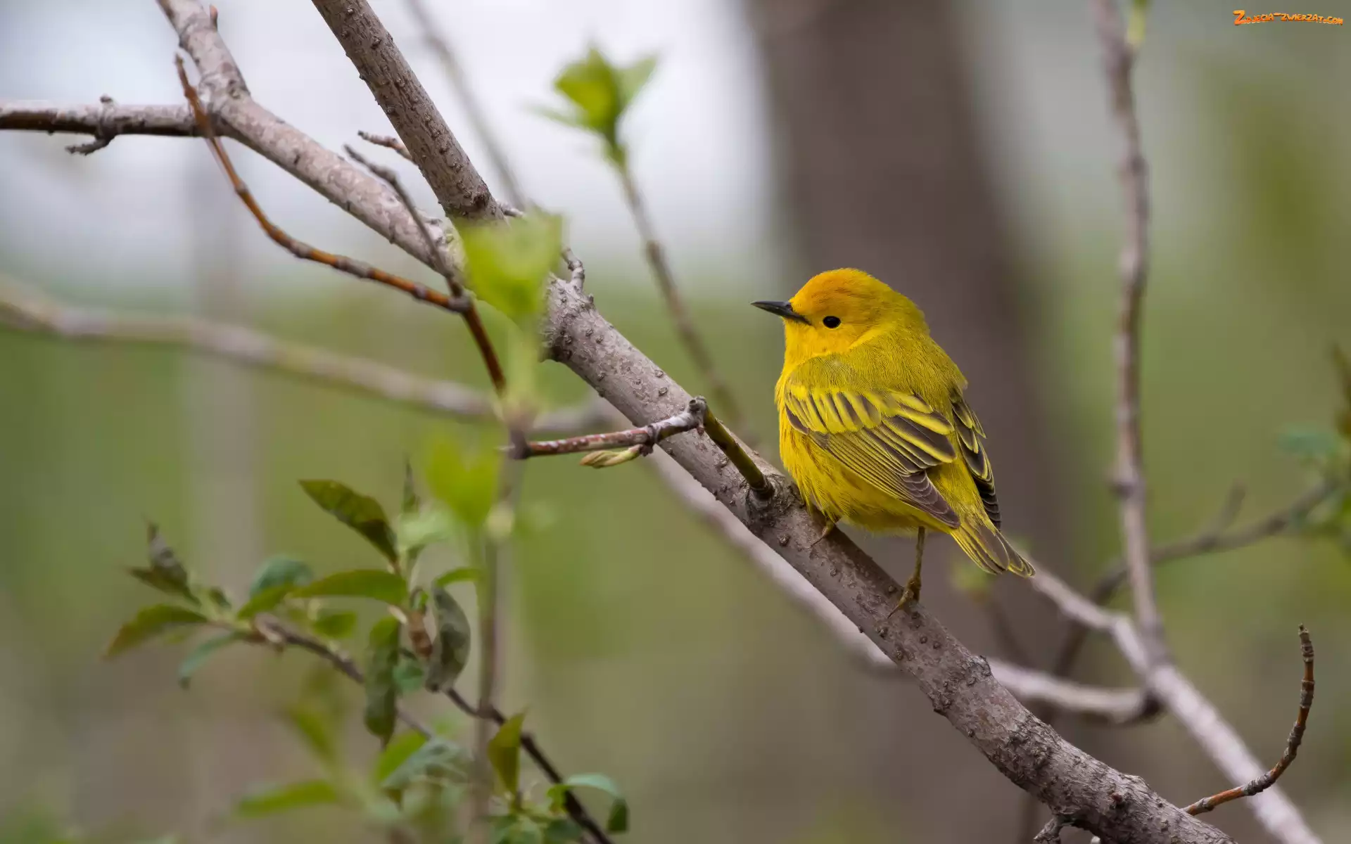 Gałązki, Lasówka złotawa, Liście, Ptak, Żółty