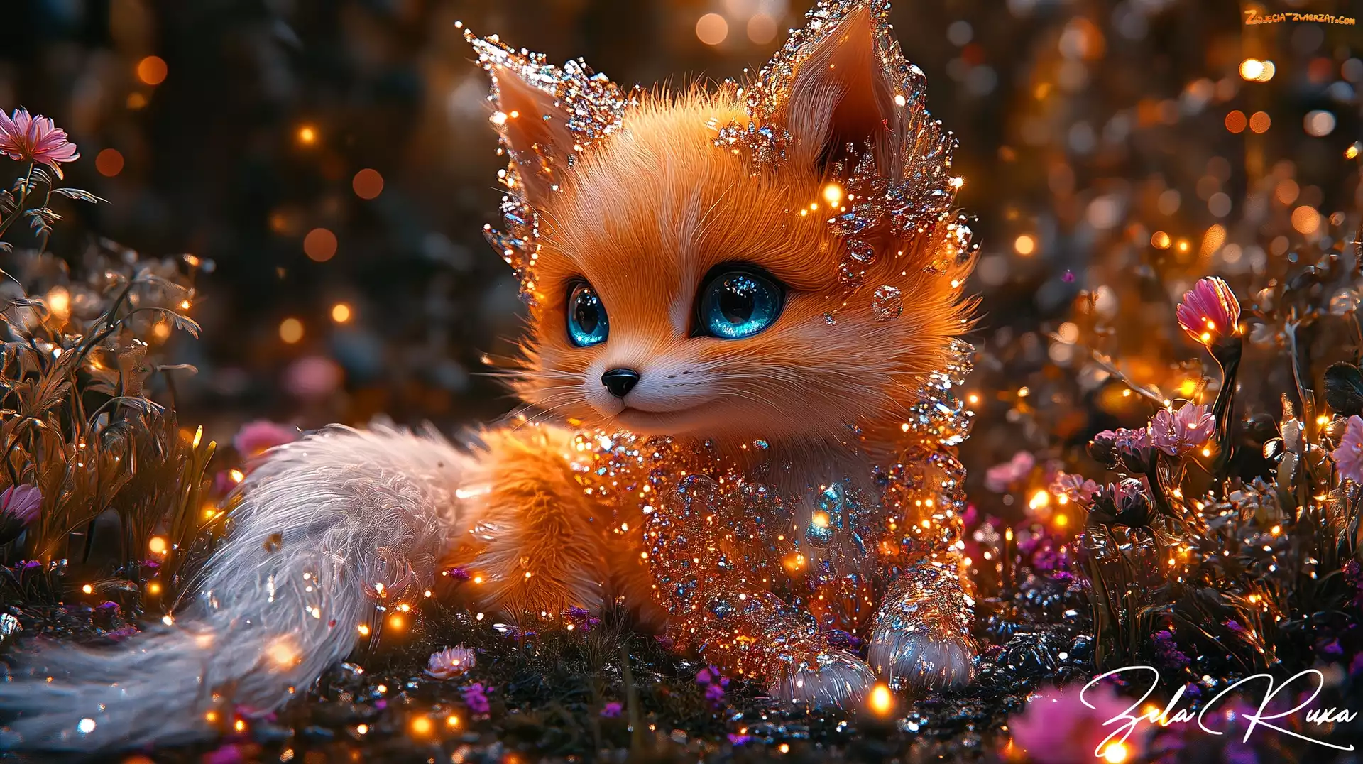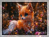 Lis, Lisek, Grafika AI, Kwiaty