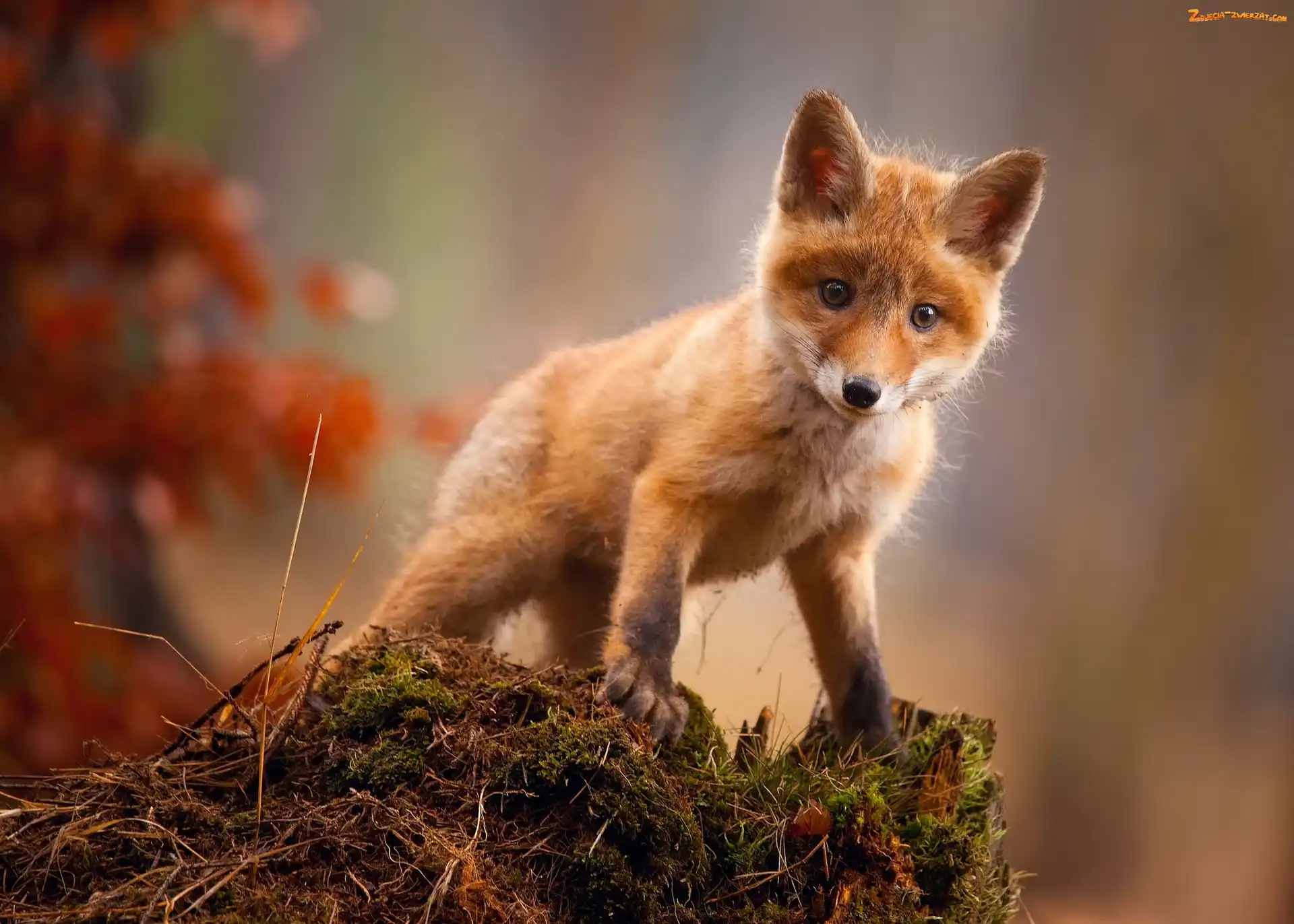 Zdjęcie: Lisek, Lis, Tło, Rozmyte, Rudy, Mech