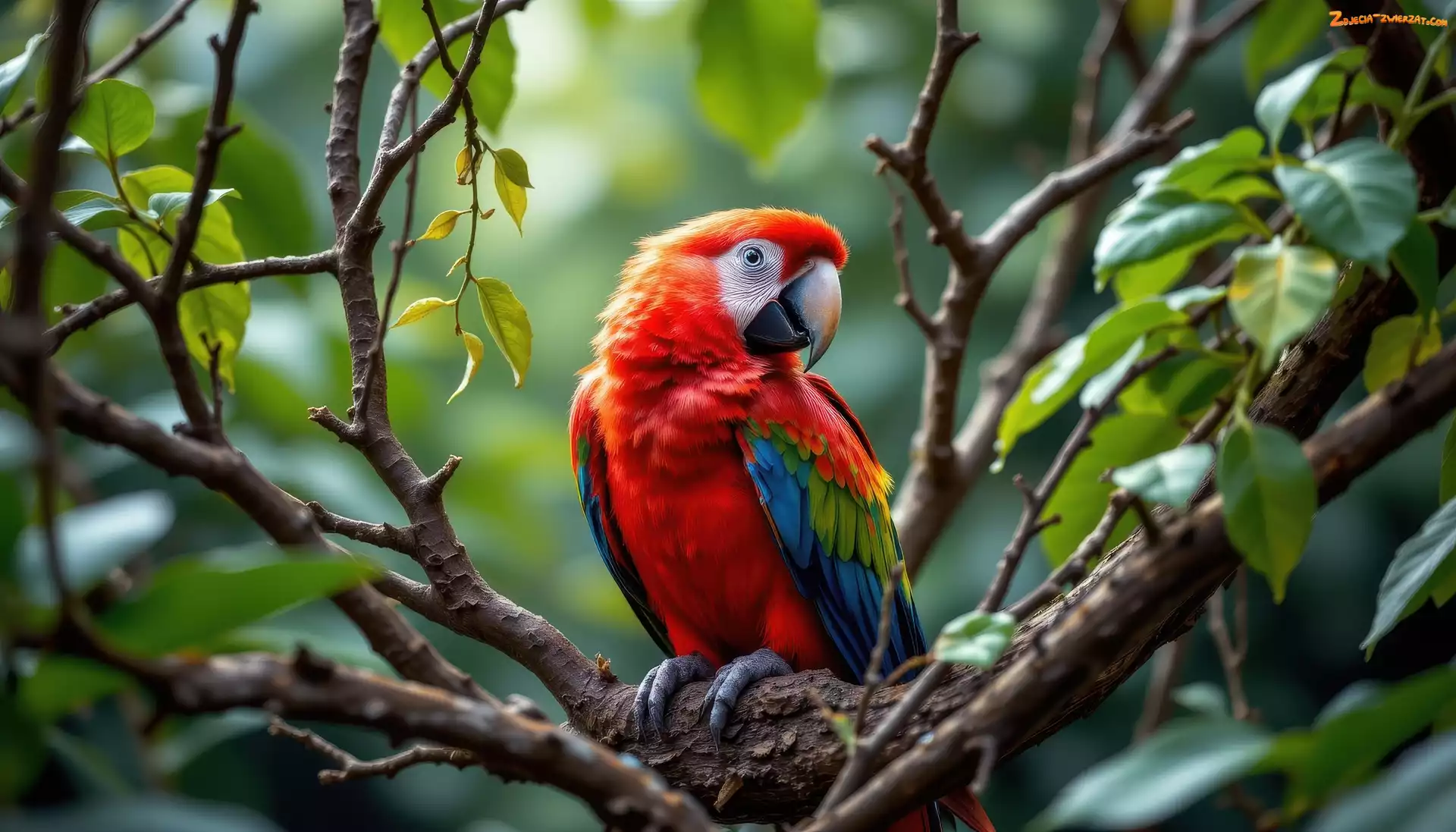Zdjęcie: Gałązki, Ptak, Ara, Papuga, Grafika AI, Kolorowa, Listki