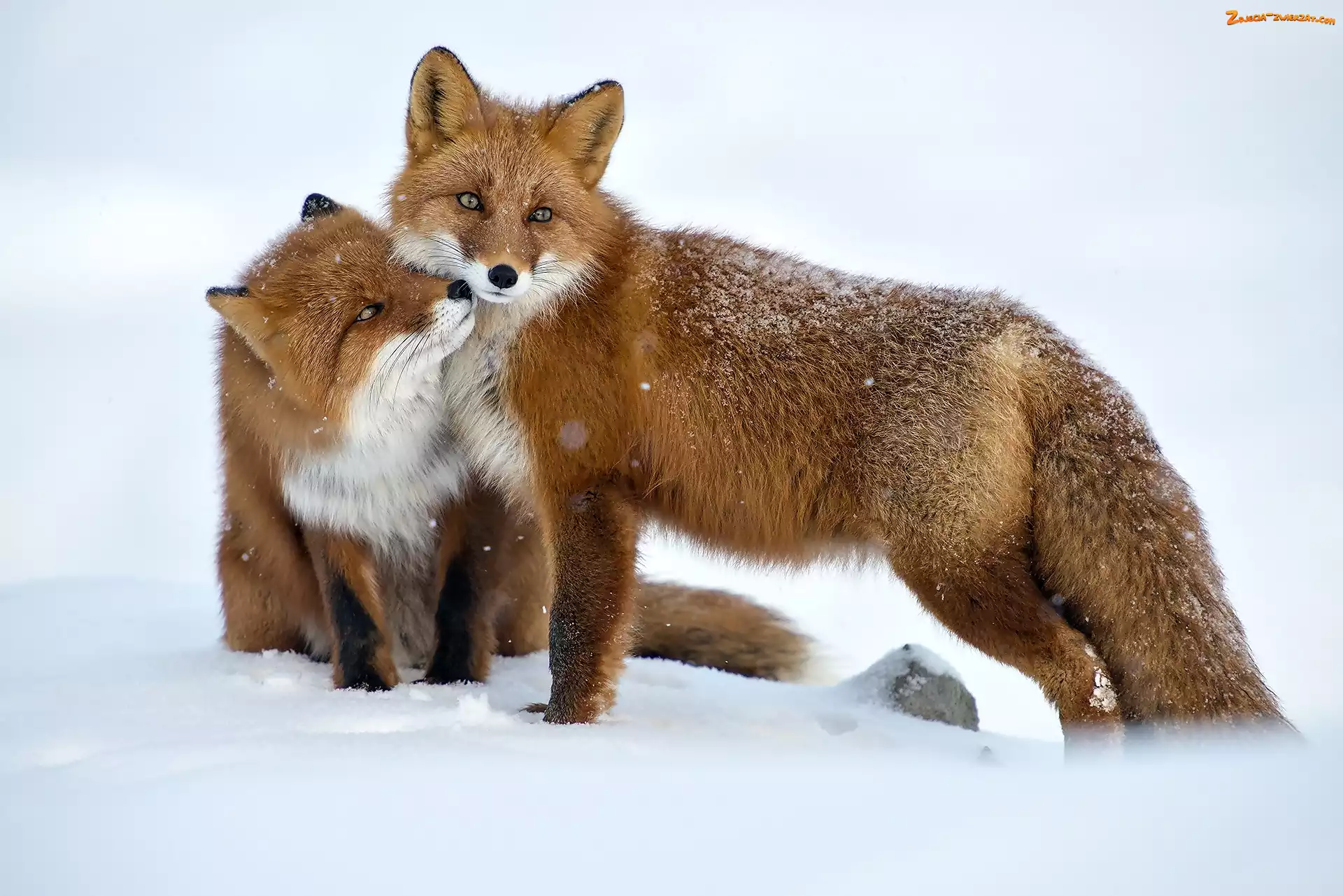 Zdjęcie: Lisy, Śnieg, Dwa, Zima