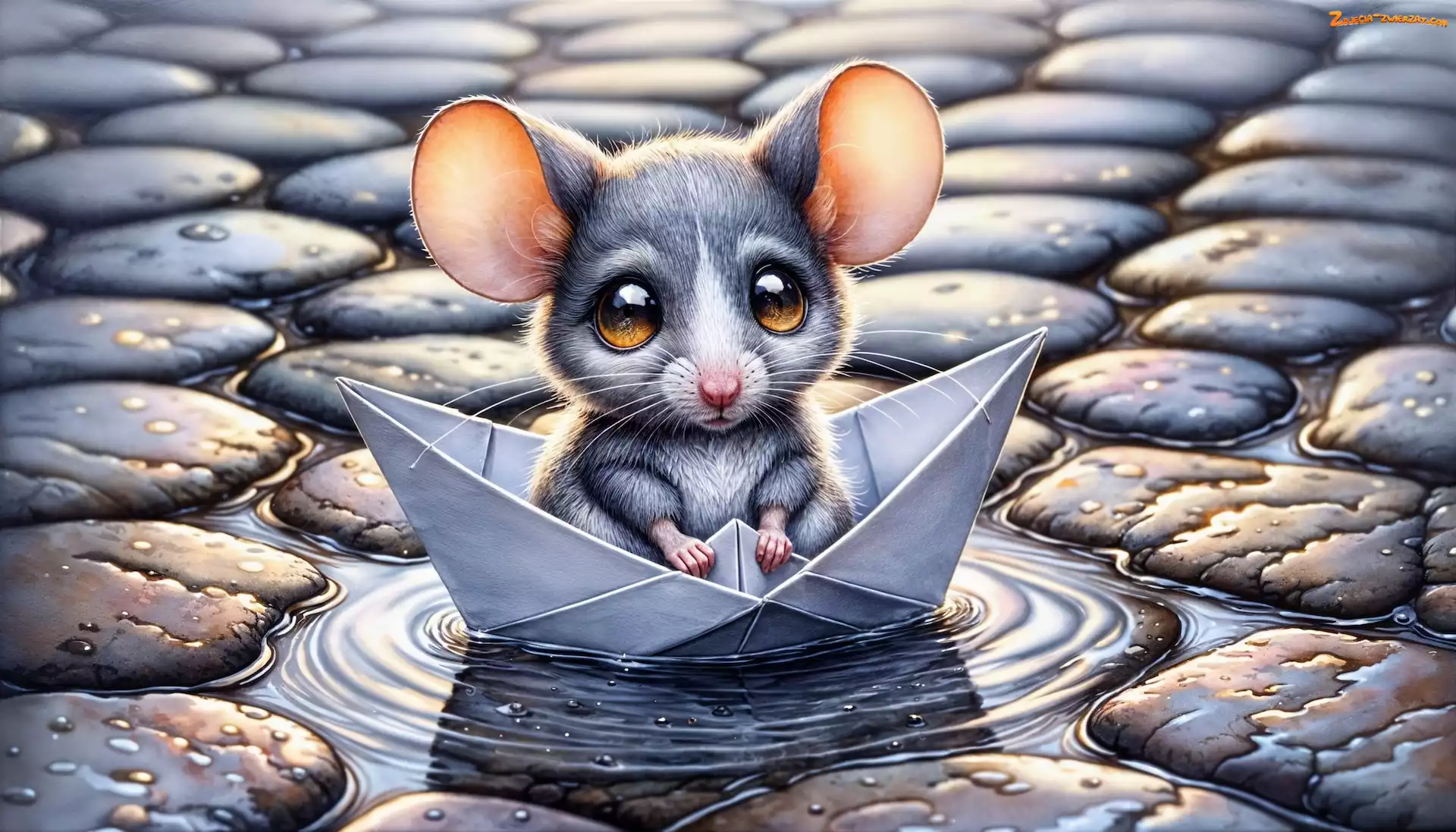 Kałuża, Łódka, Grafika, Myszka, Papierowa