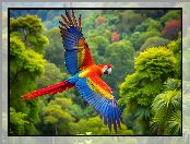 Drzewa, Lot, AI, Papuga, Ara