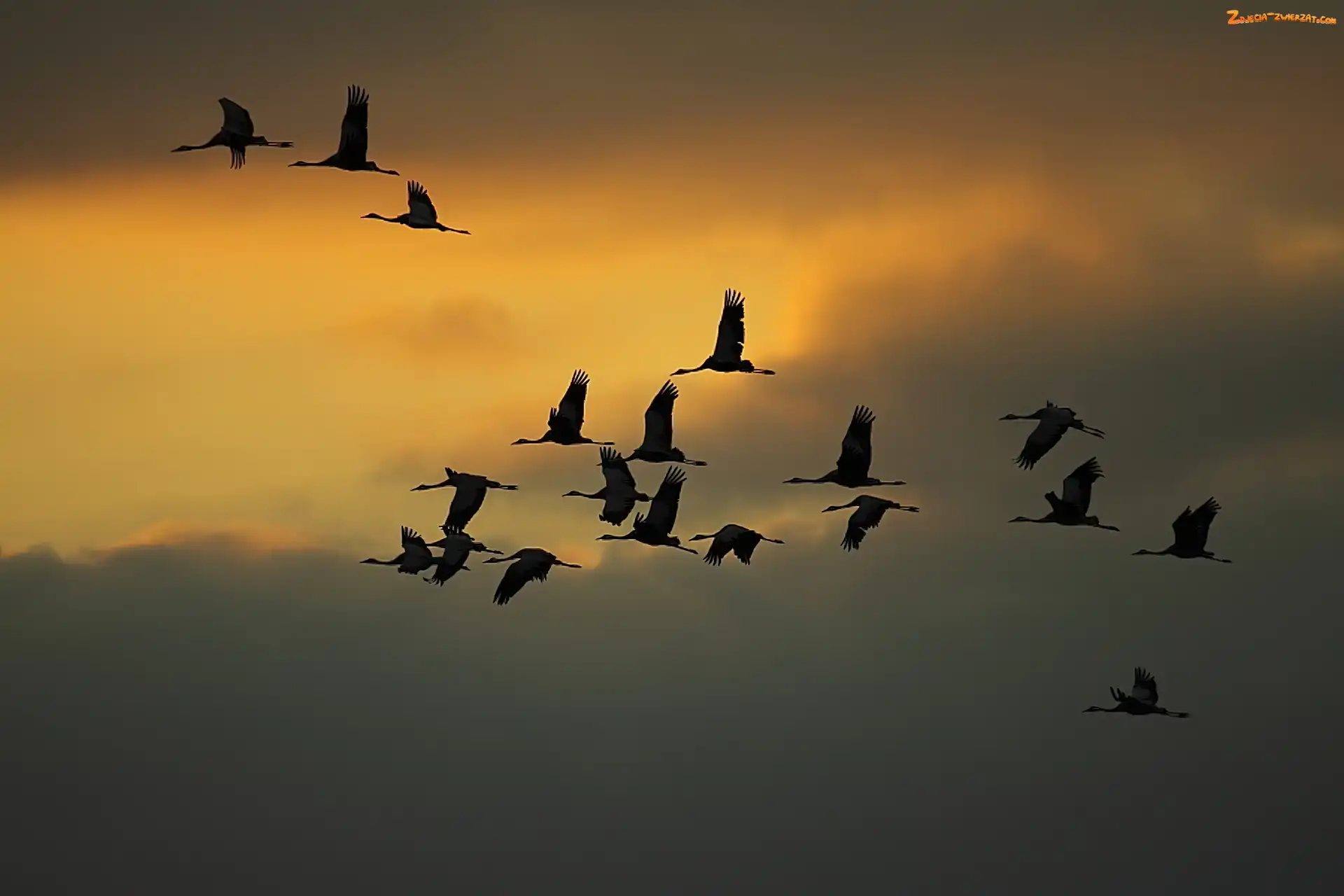 Zdjęcie: Chmury, Lot, Żurawi