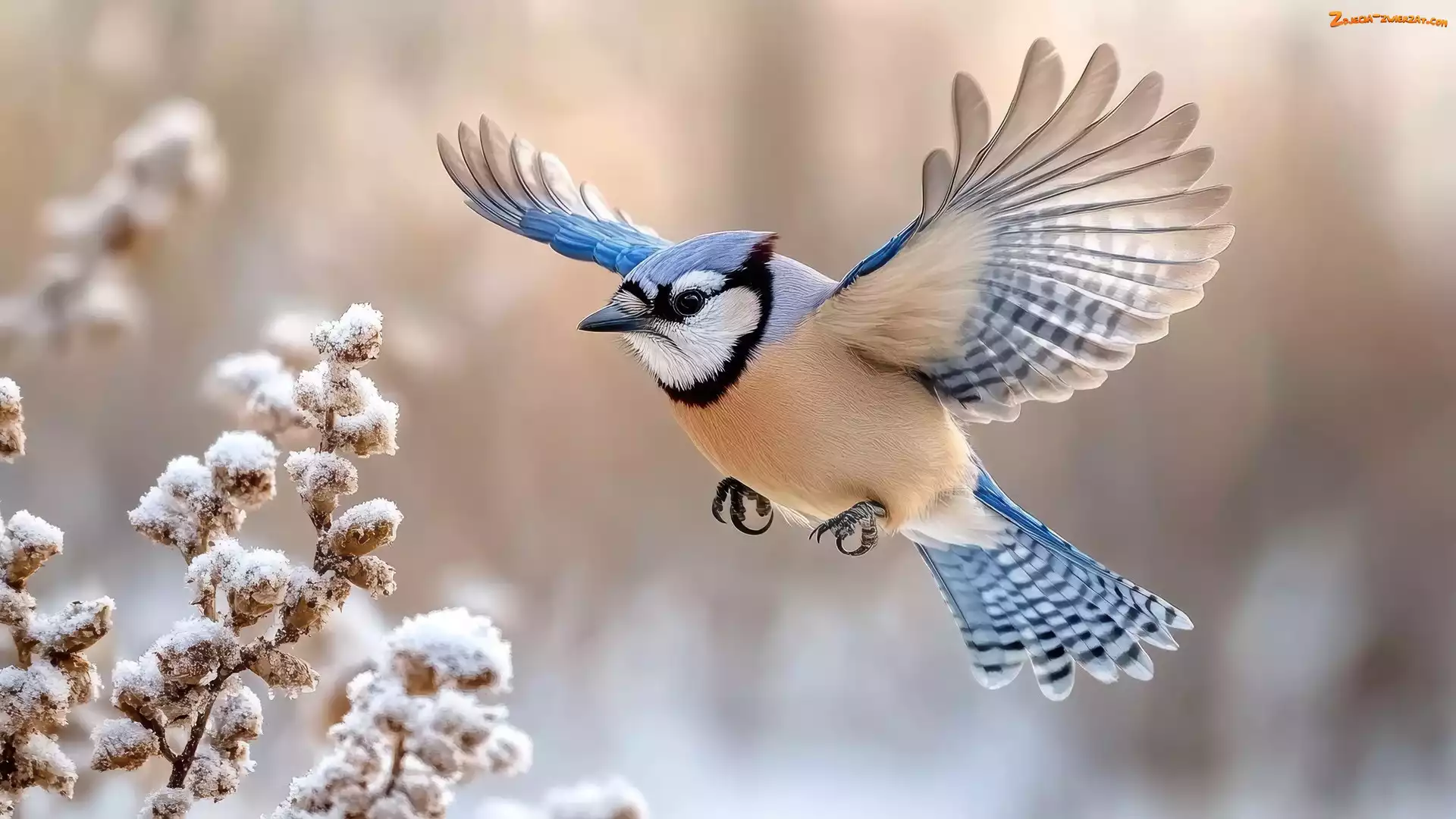 Zdjęcie: Roślina, Rozpostarte, Modrosójka, Lot, Skrzydła, Ośnieżona