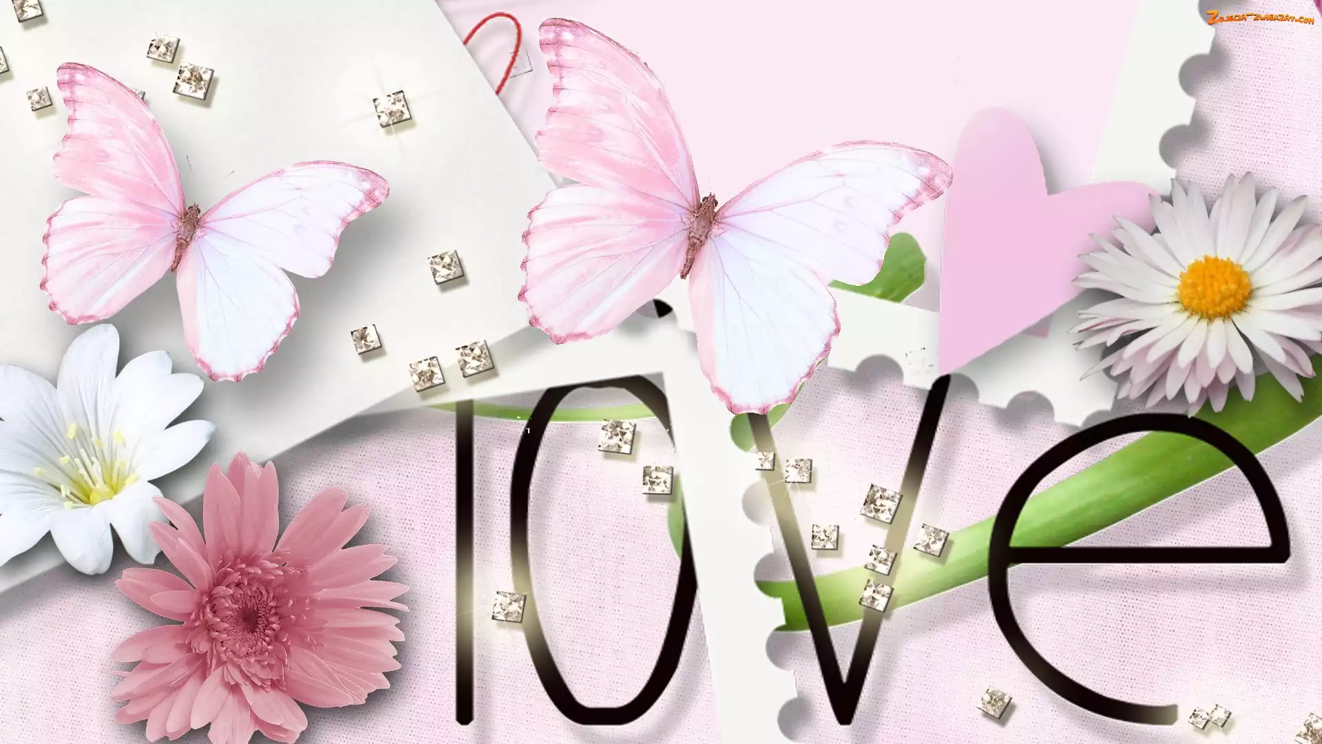 Zdjęcie: Love, Motyle, Napis, Kwiaty