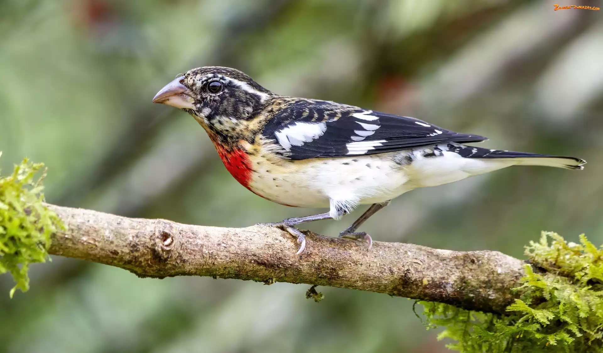 Zdjęcie: Ptak, Łuszcz strojny, Mech, Gałąź