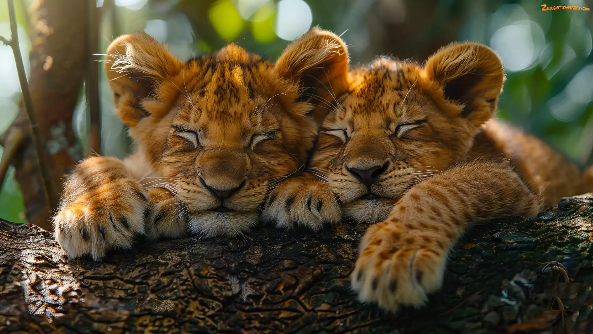 Sen, Lwy, Dwa, Lwiątka, Drzewa, Śpiące, Konar