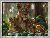 Zdjęcie: Lwy, Lwica, AI, Lwiątka