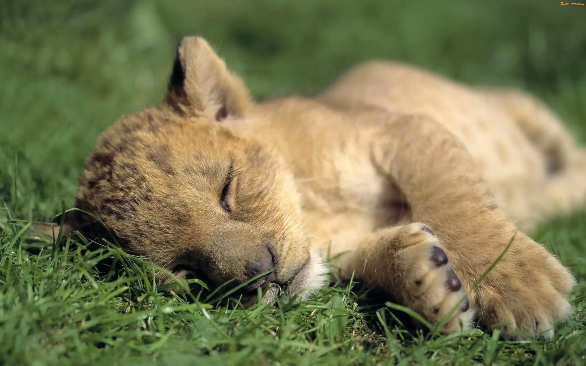Zdjęcie: Trawa, Lwiątko, Sen