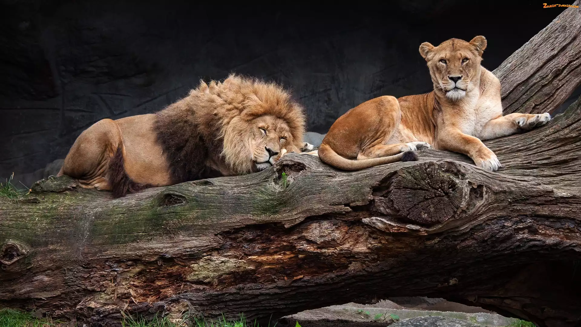 Zdjęcie: Lwica, Pień, Lew, Kłoda