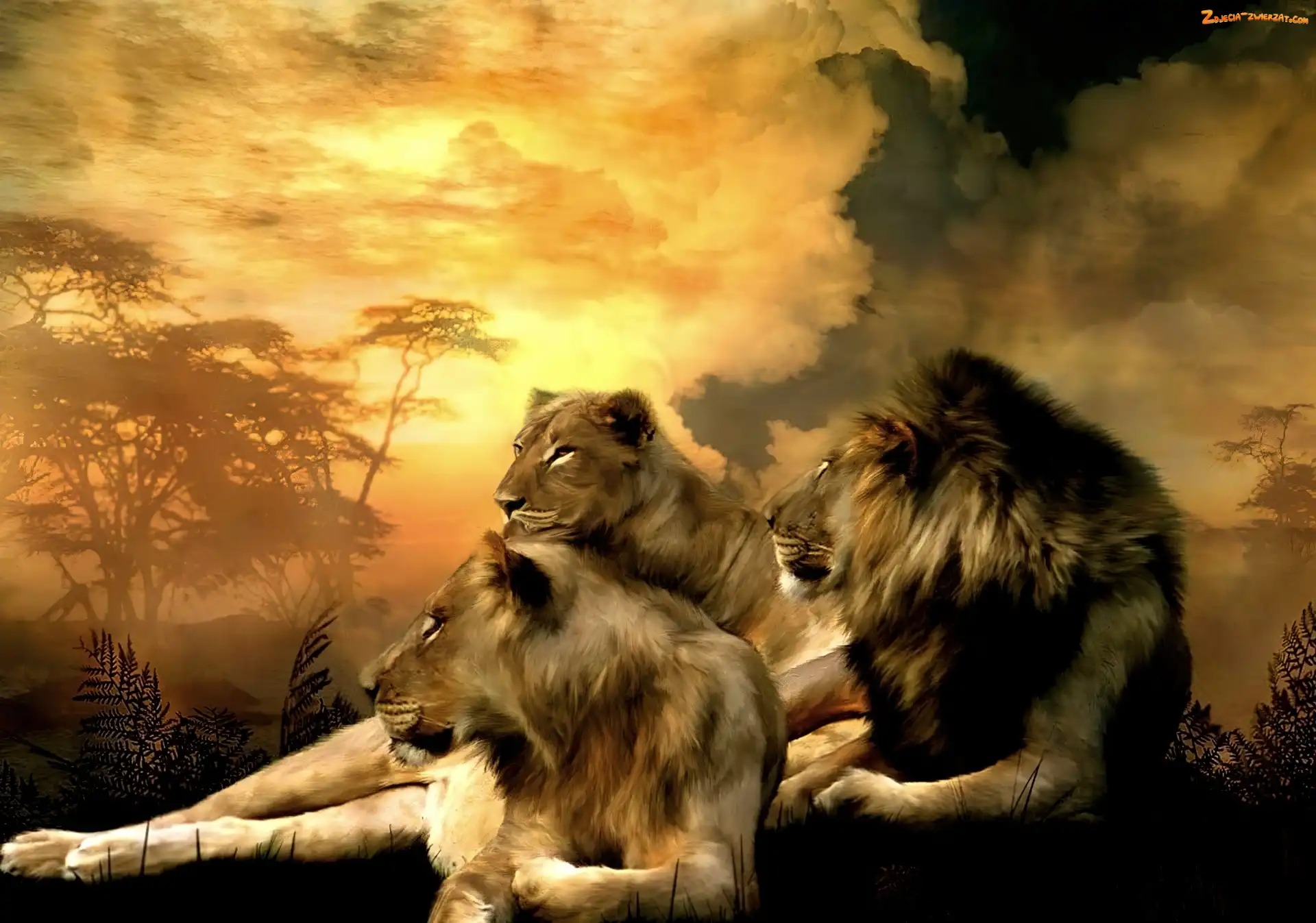 Zdjęcie: Lwica, Słońca, Lwy, Zachód