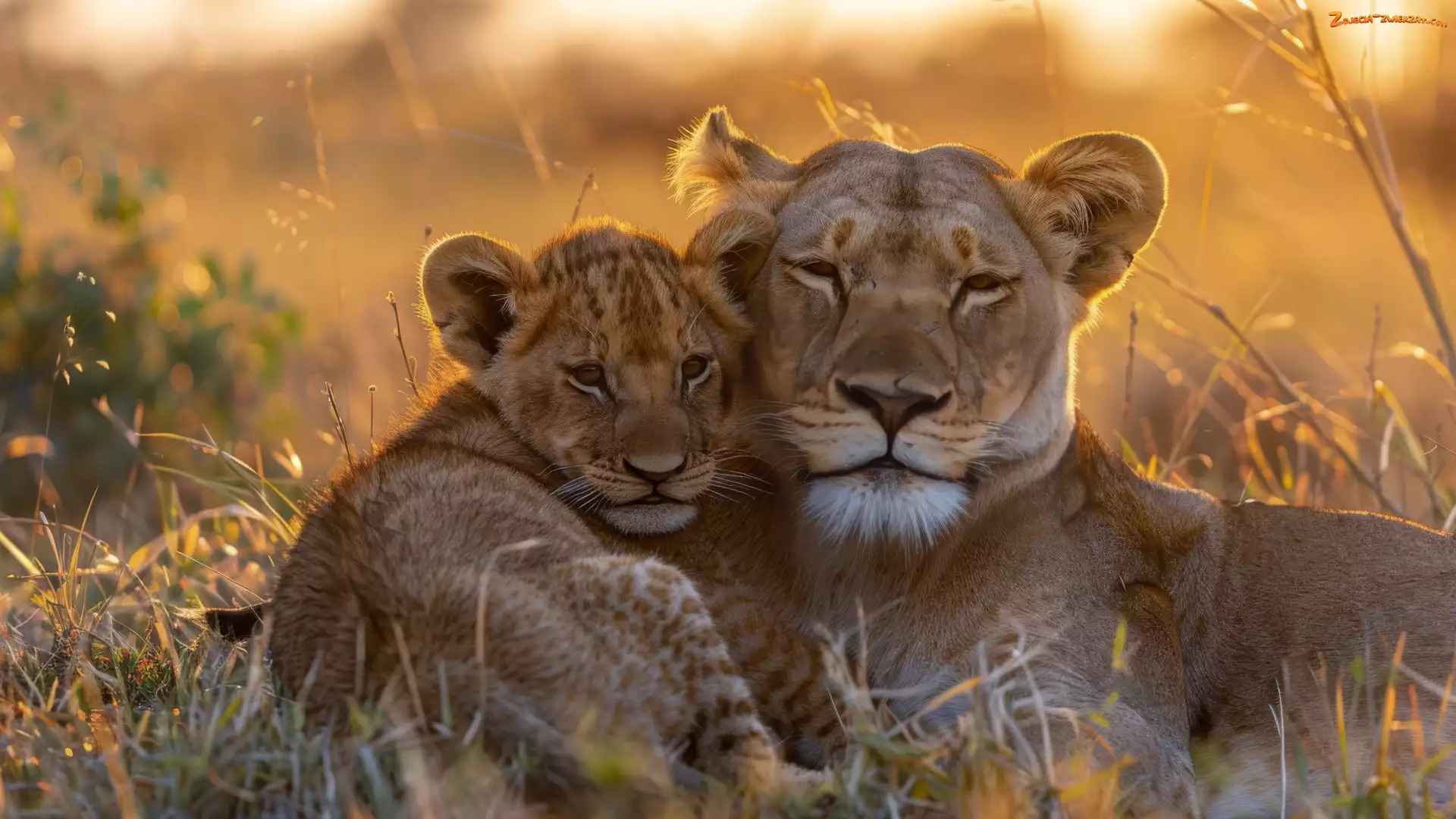 Zdjęcie: Grafika, Mały, Lwy, Lwica, Lew, Trawa