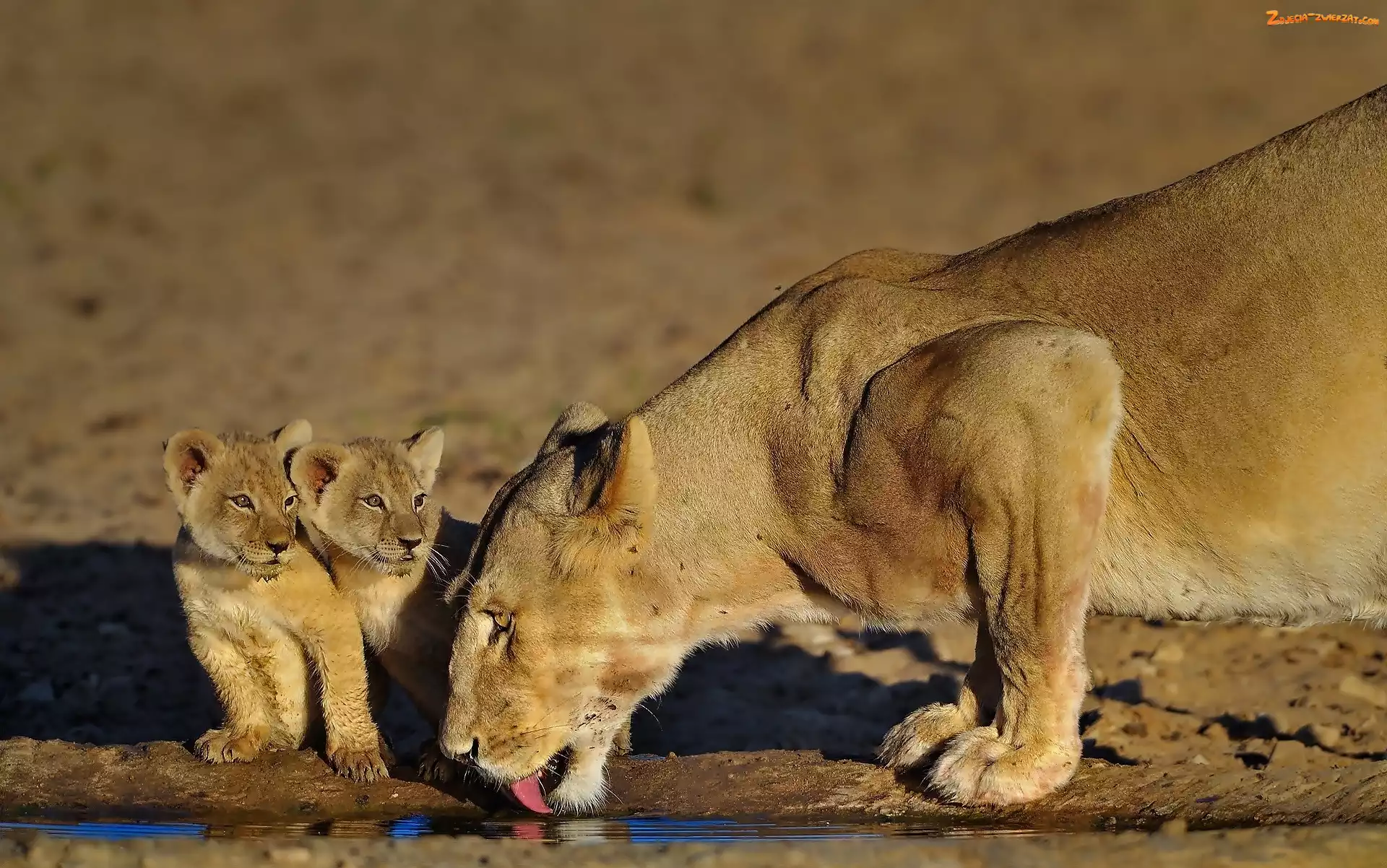 Zdjęcie: Wodopój, Lwica, Lwiątka