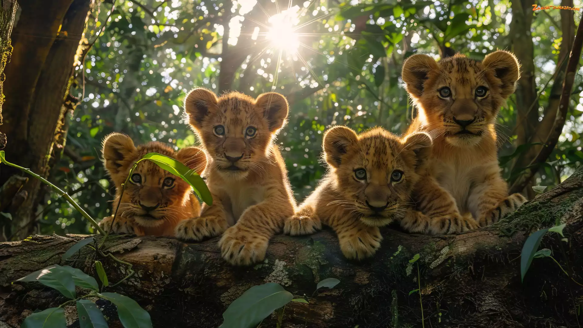Zdjęcie: Cztery, Lwiątka, Konar, Lwy