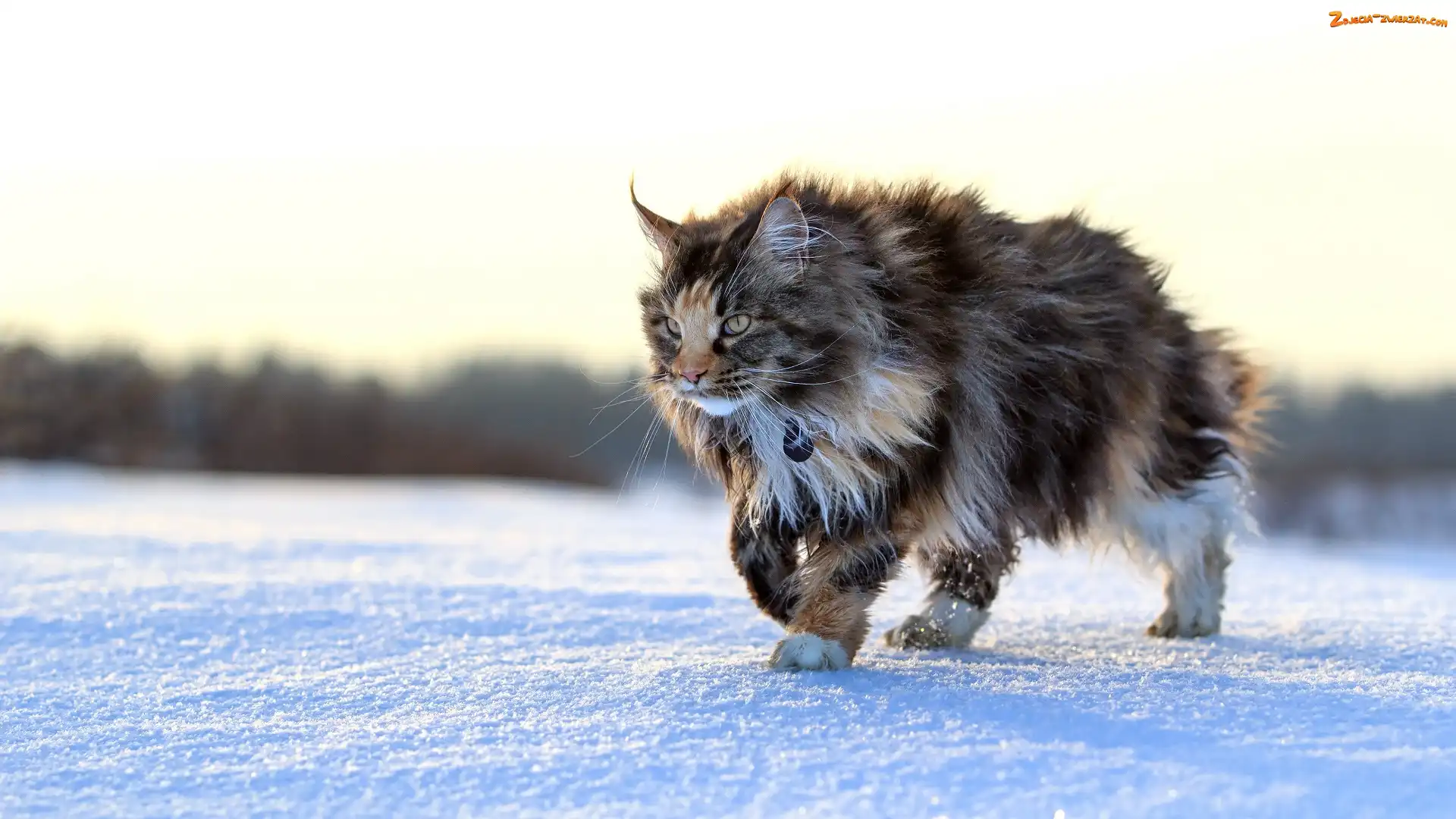 Zdjęcie: Maine coon, Śnieg, Kot, Zima