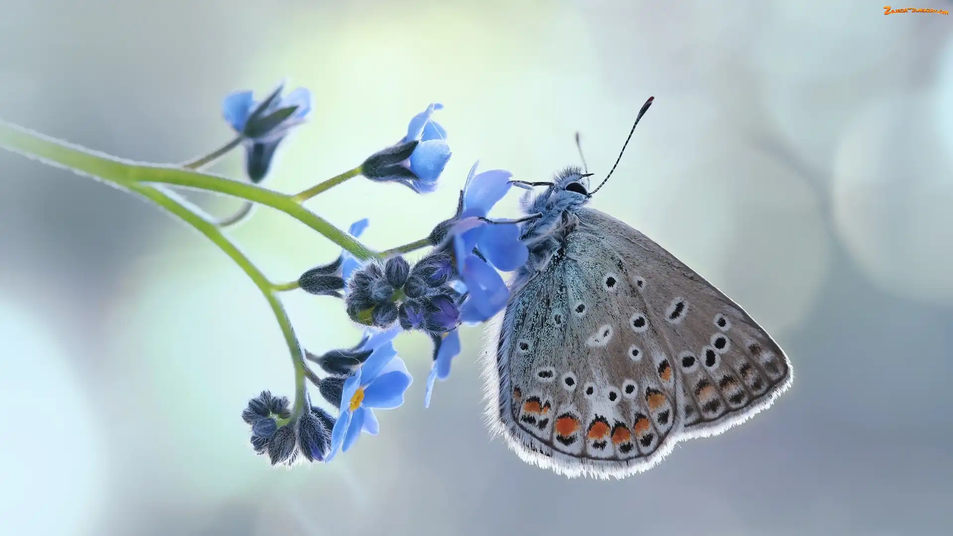 Zdjęcie: Makro, Niezapominajka, Modraszek ikar, Motyl, Kwiat