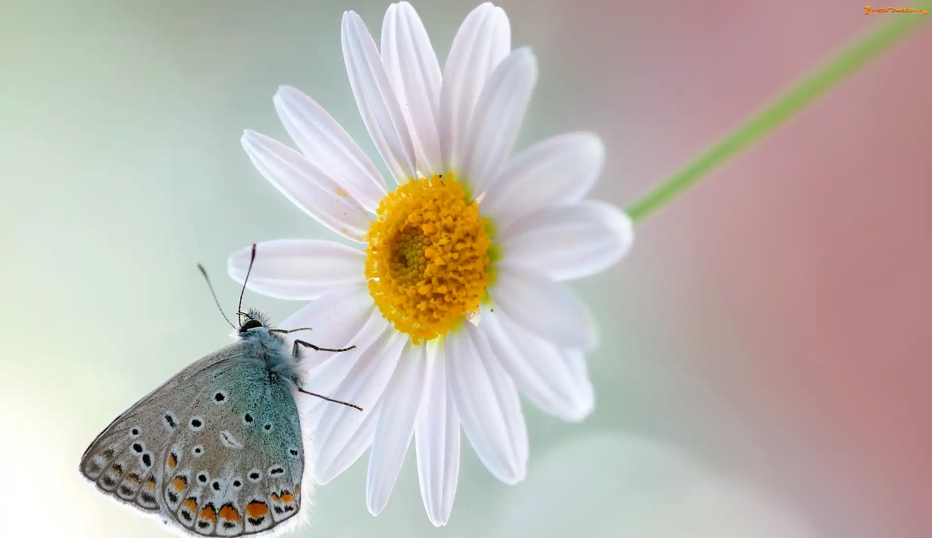 Makro, Margerytka, Modraszek, Motyl, Kwiat