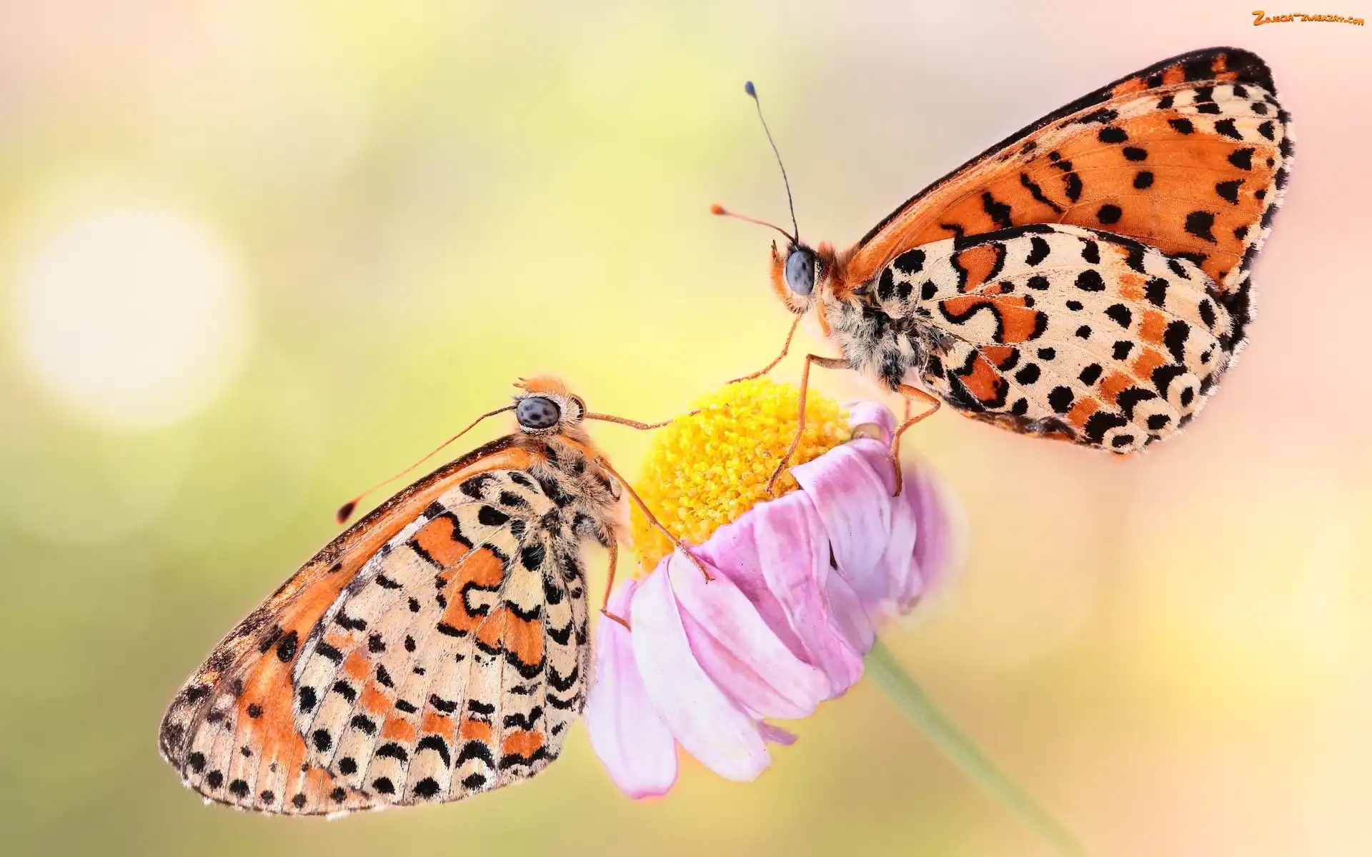 Zdjęcie: Makro, Kwiatek, Motyle, Dwa, Przeplatki didyma