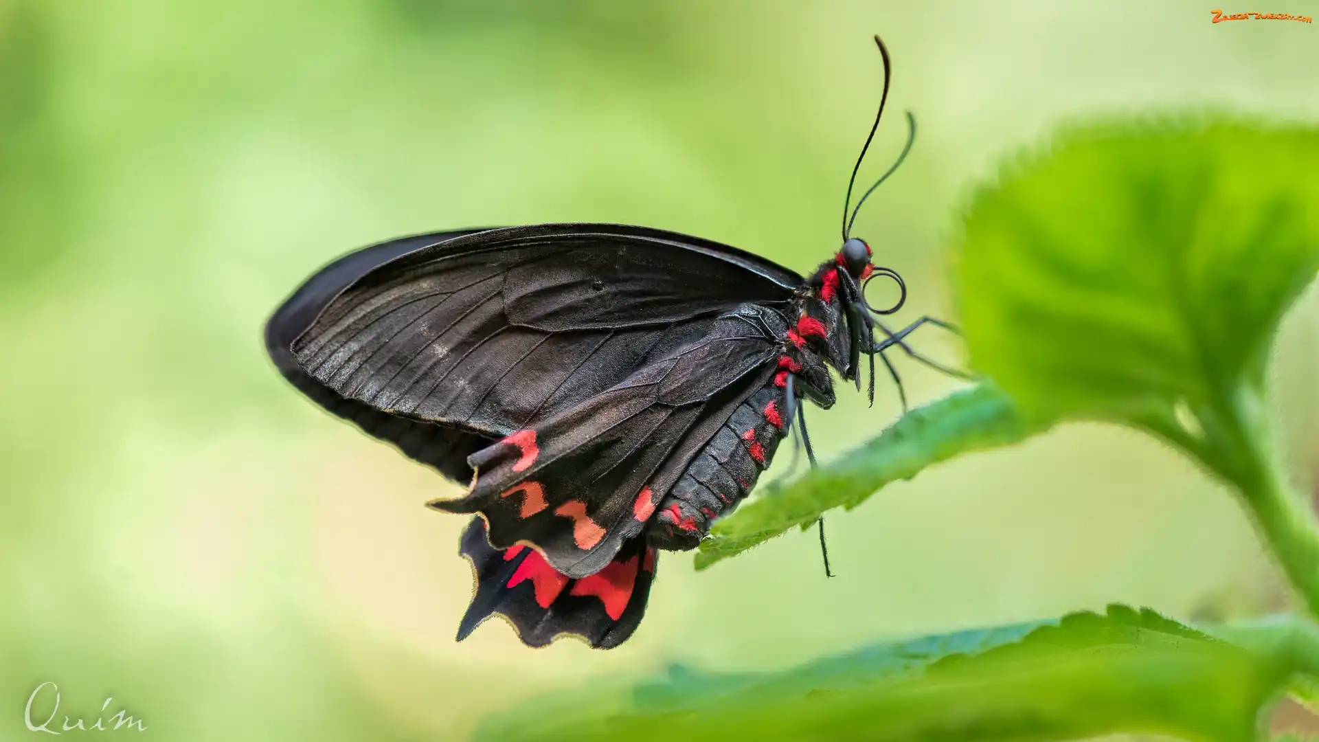 Zdjęcie: Makro, Liść, Motyl, Czarny, Scarlet mormon