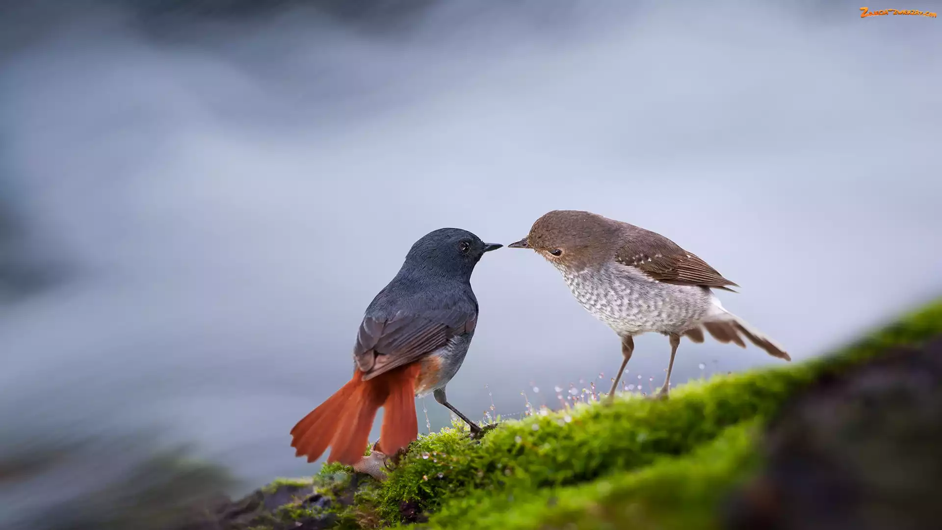 Zdjęcie: Małe, Mech, Dwa, Ptaszki