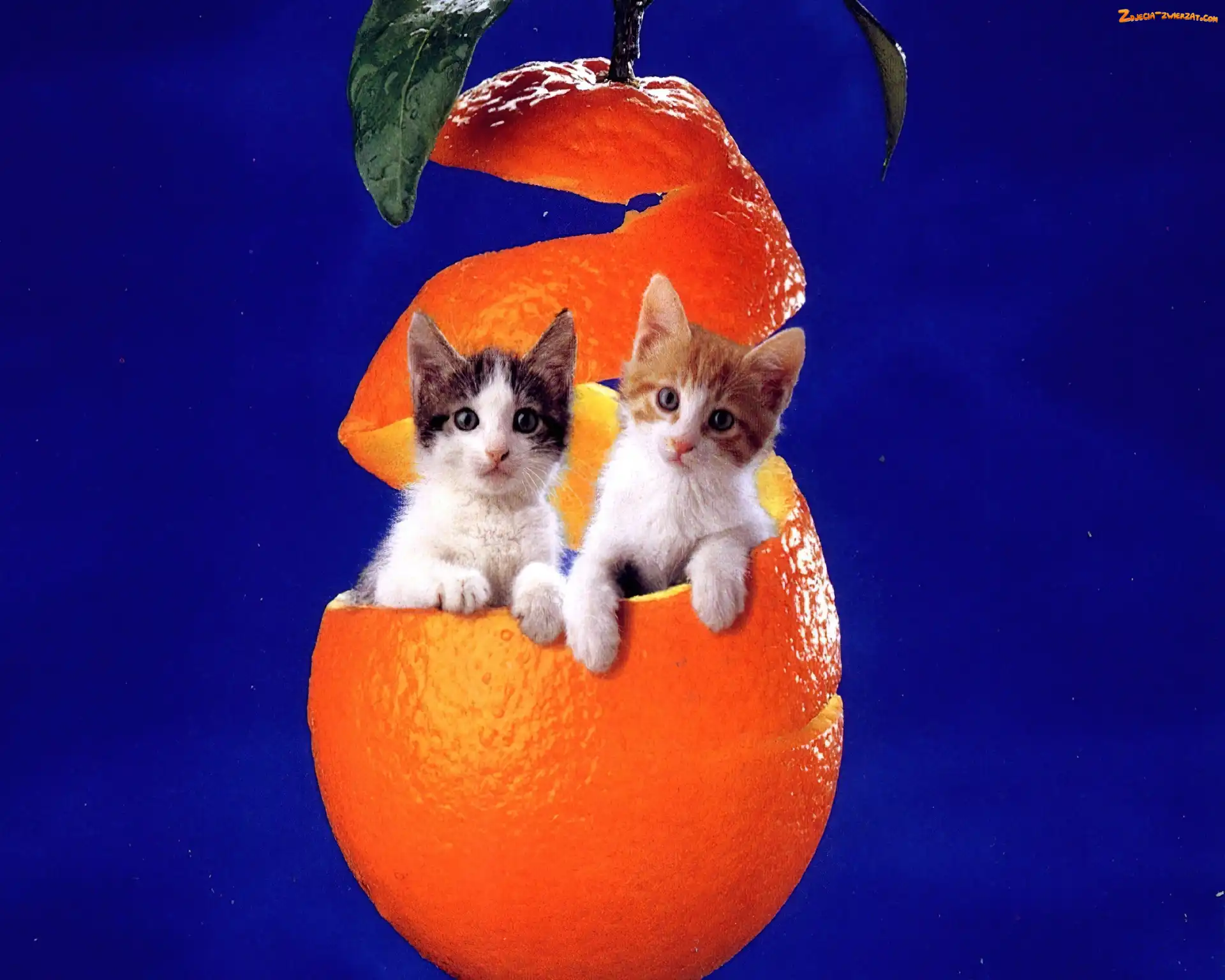 Zdjęcie: Małe, Pomarańcza, Dwa, Kotki