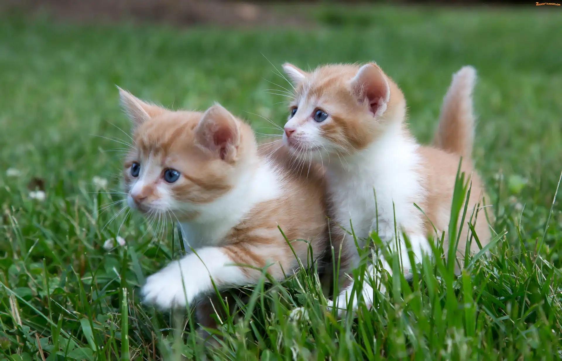 Zdjęcie: Małe, Trawa, Dwa, Kotki