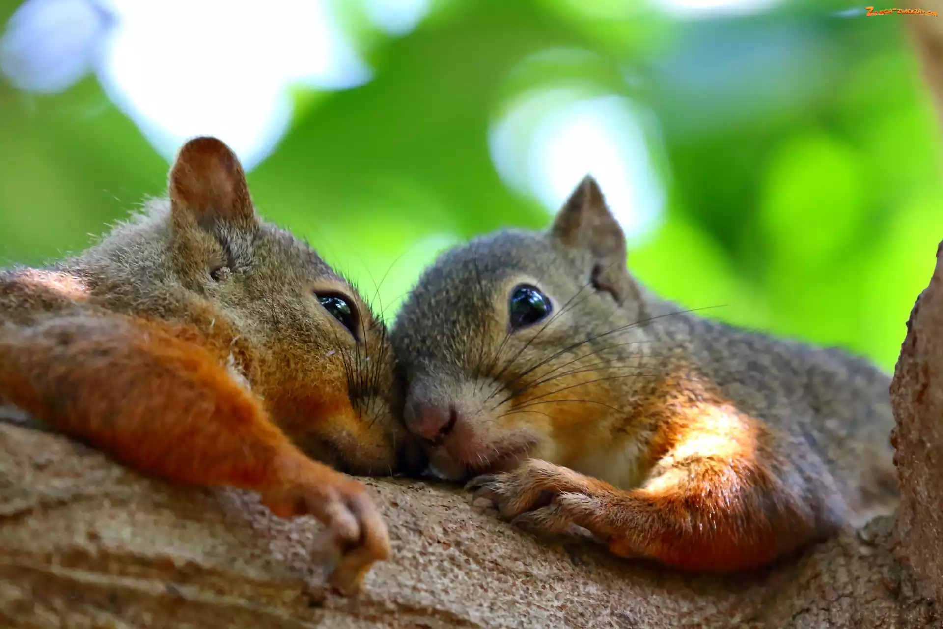 Zdjęcie: Małe, Wiewiórki, Dwie, Przytulone