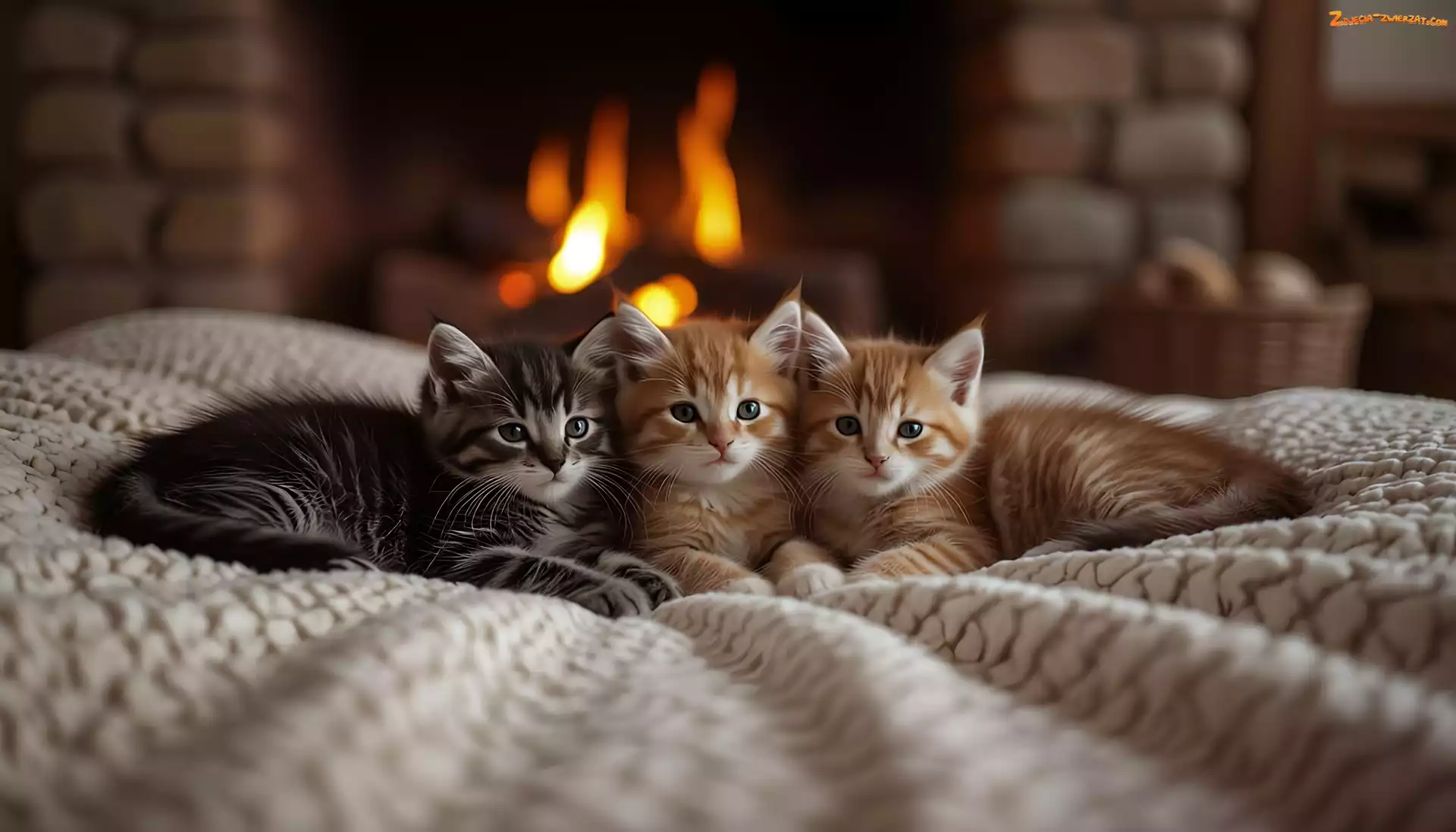 Zdjęcie: AI, Koty, Trzy, Małe, Legowisko, Grafika