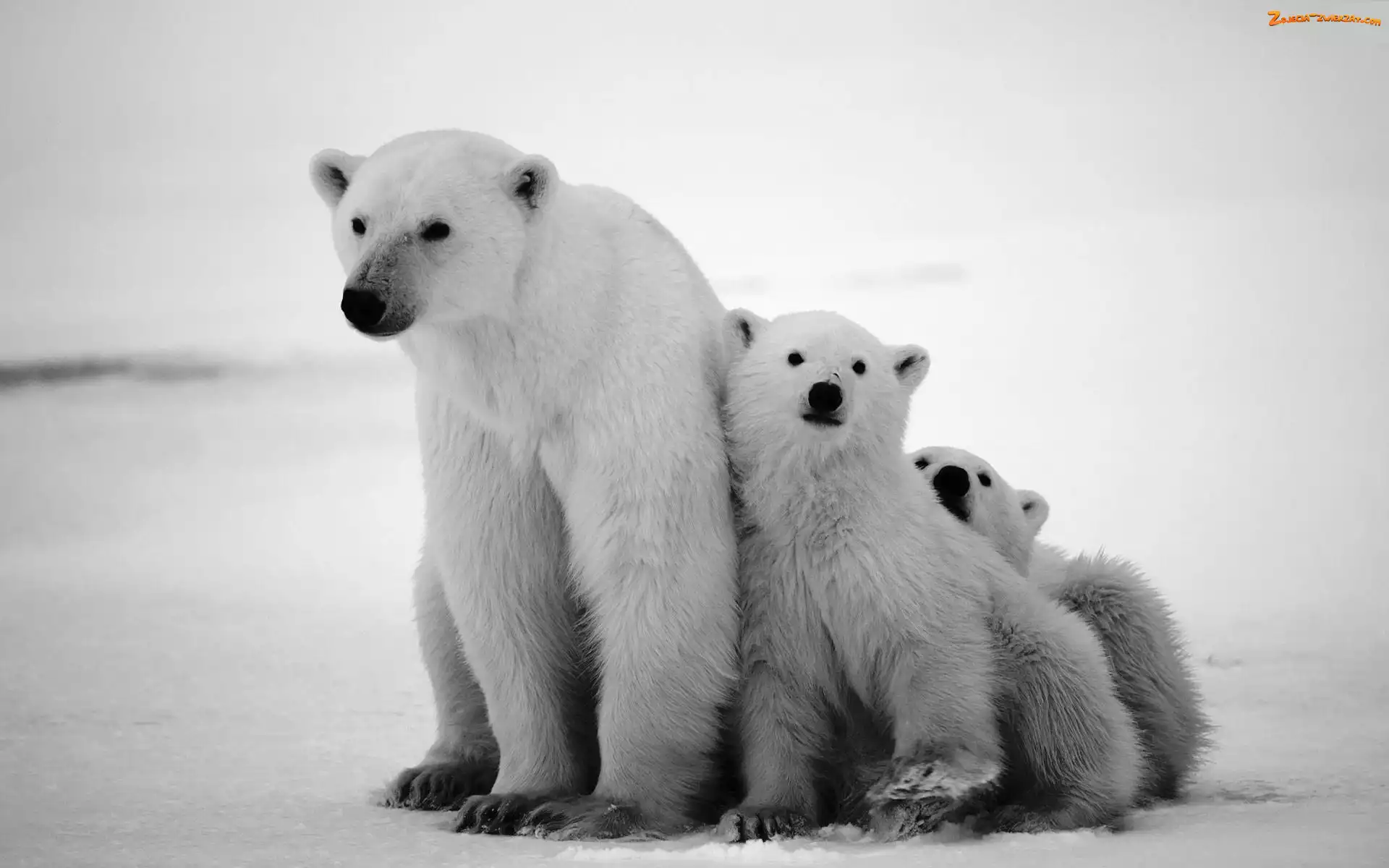Zdjęcie: Małe, Dwa, Polarne, Niedzwiedzie, Mama