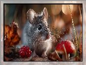 Zdjęcie: AI, Grzyb, Myszka, Malina, Liście, Grafika