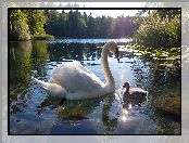 Zdjęcie: Łabędź, Mały, Jezioro, Dwa, Łabędzie