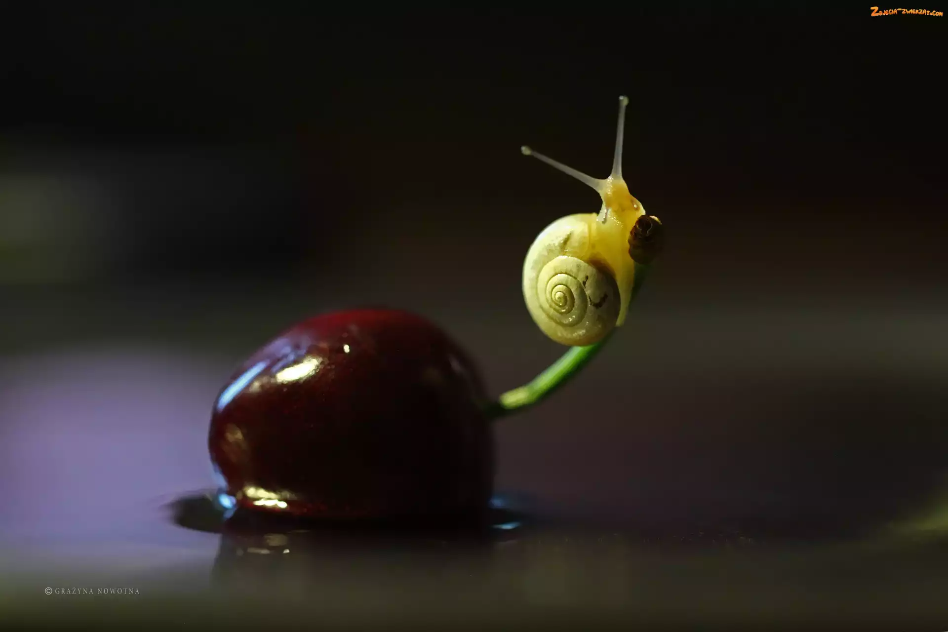 Zdjęcie: Ślimak, Owoc, Mały, Czereśnia