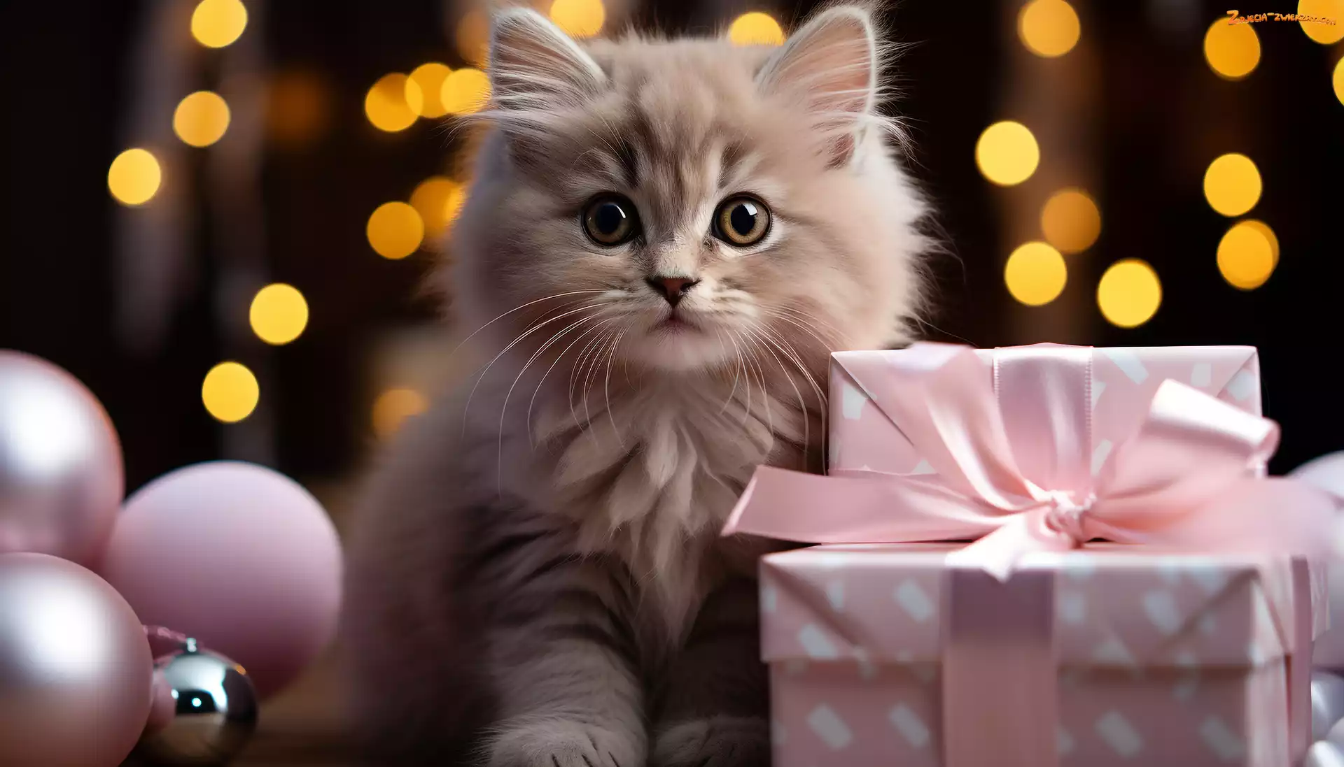 Zdjęcie: Bombki, Kot, Puszysty, Mały, Różowe, Prezenty