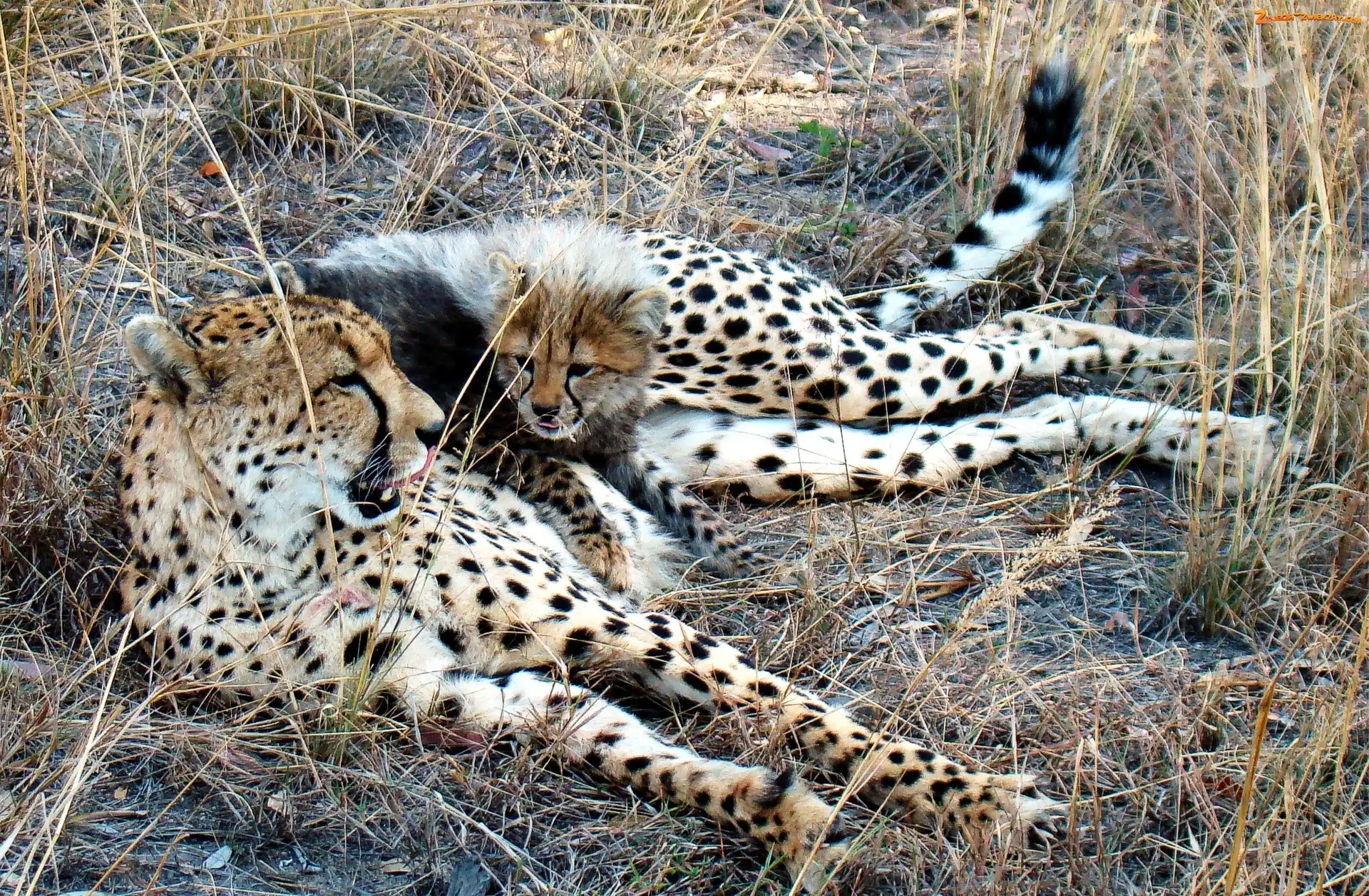 Zdjęcie: Mama, Trawa, Gepardy, Mały
