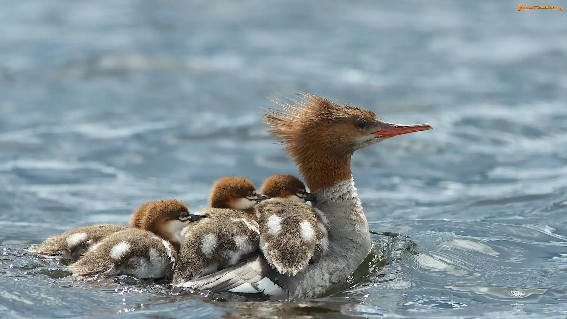 Zdjęcie: Mama, Woda, Perkozy, Młode