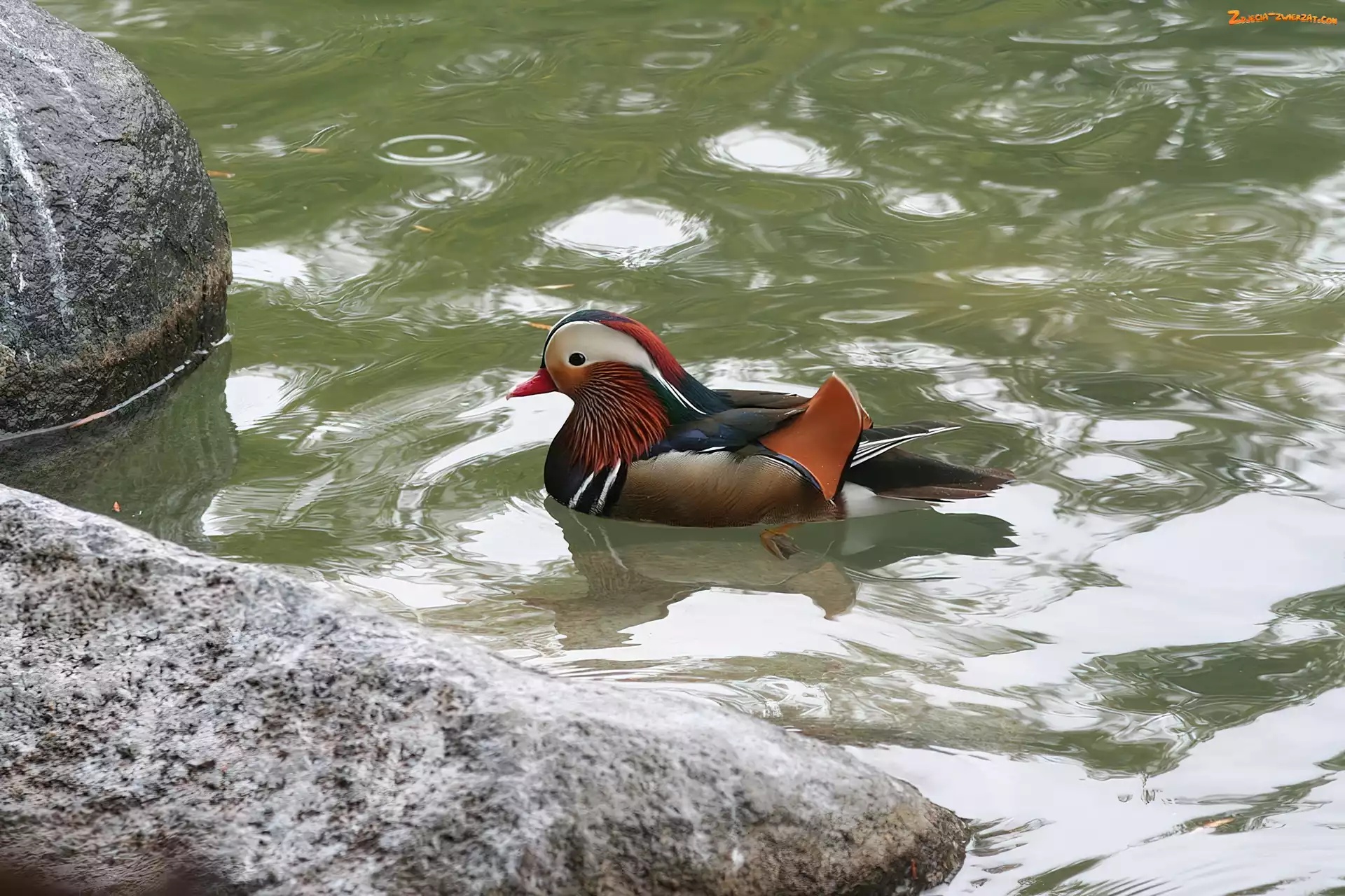 Zdjęcie: Kaczka, Mandarin, Kamienie, Woda