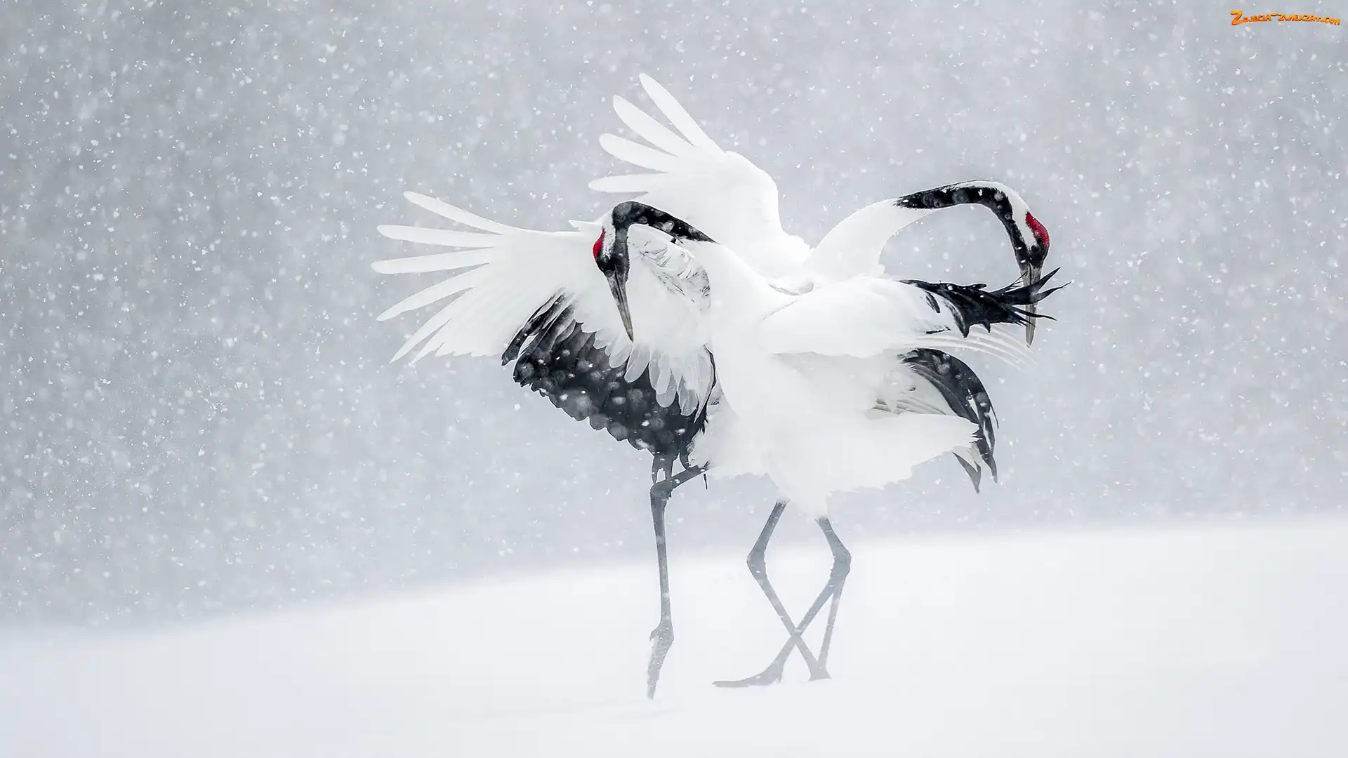 Zdjęcie: Śnieg, Żurawie mandżurskie, Zima