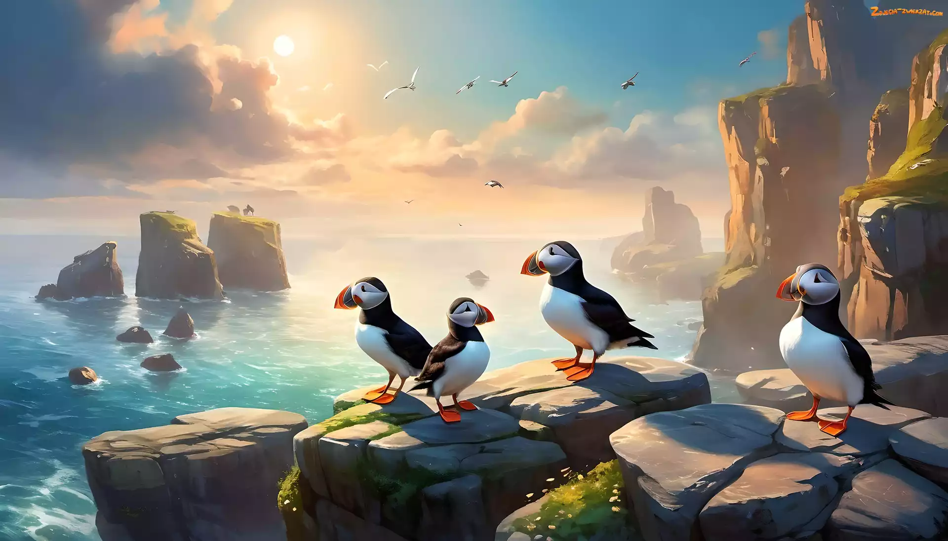 Skała, Maskonury, Grafika, Cztery, Ptaki