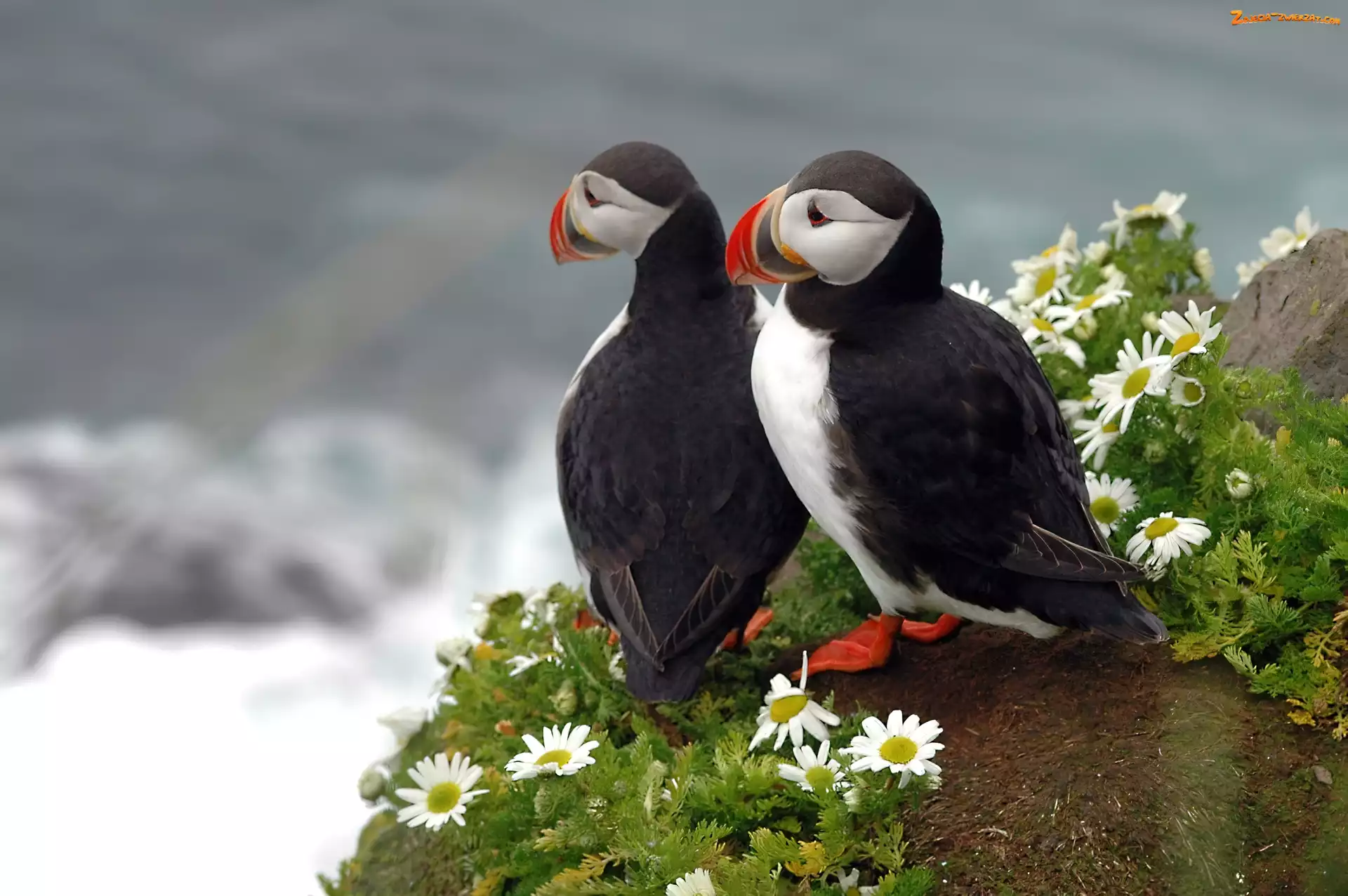 Zdjęcie: Maskonury, Kwiatki, Ptaki, Skała