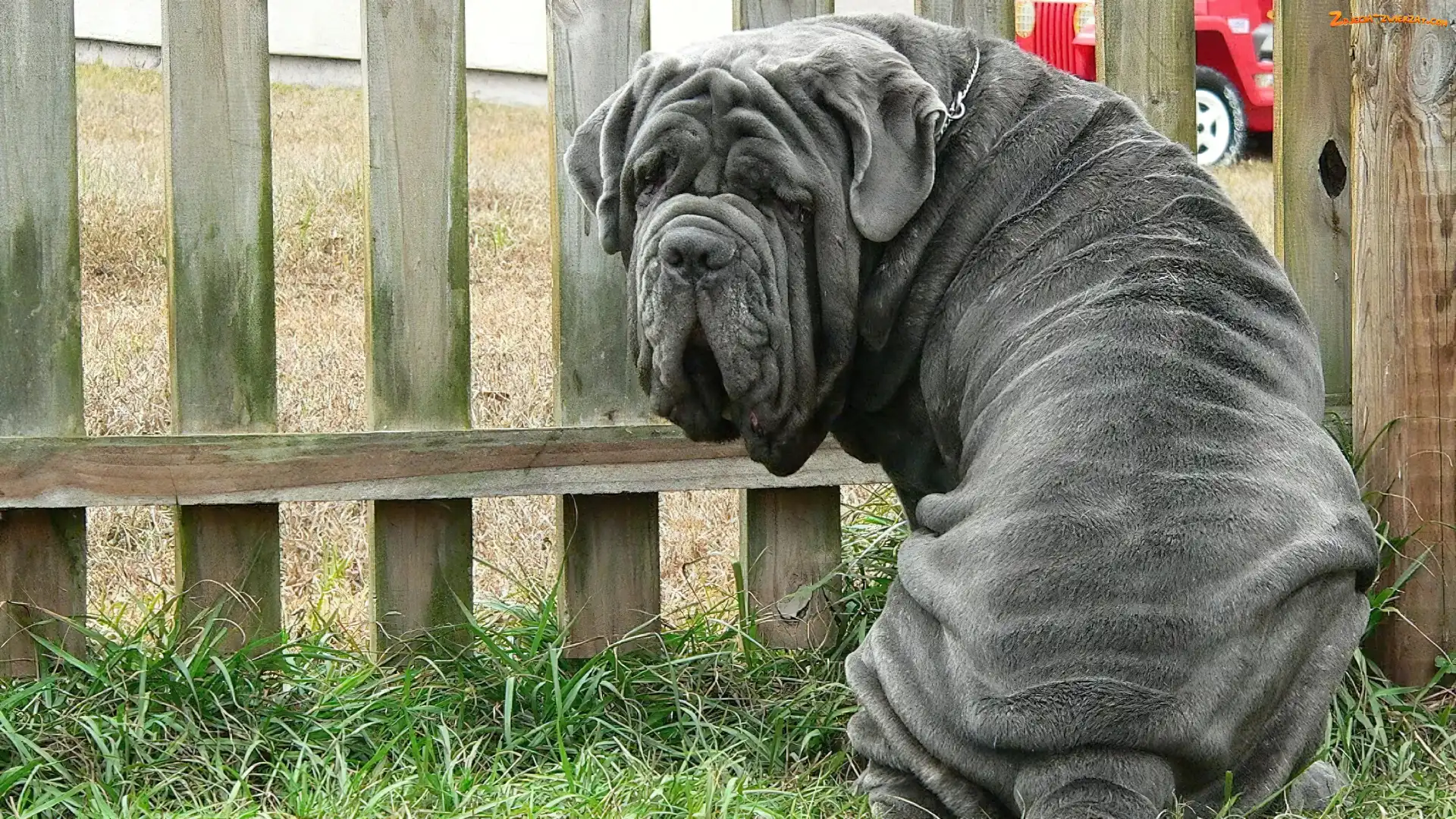 Zdjęcie: Mastif Neapolitański, Płot, Piękny, Trawa