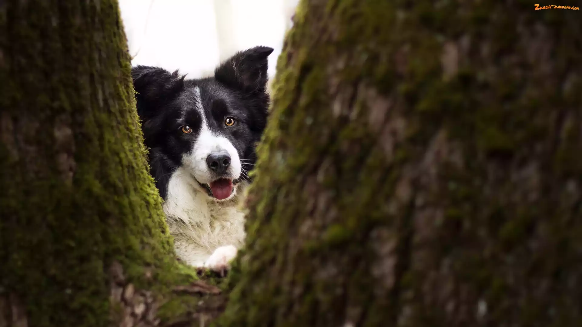 Zdjęcie: Mech, Drzewo, Border collie, Pies, Mordka