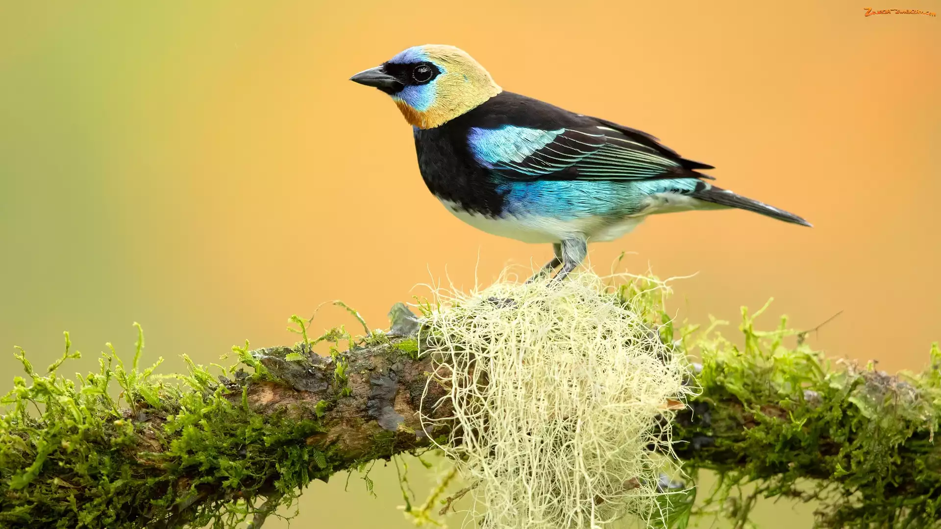 Zdjęcie: Gałąź, Tangarka modrolica, Mech, Ptak, Tanager