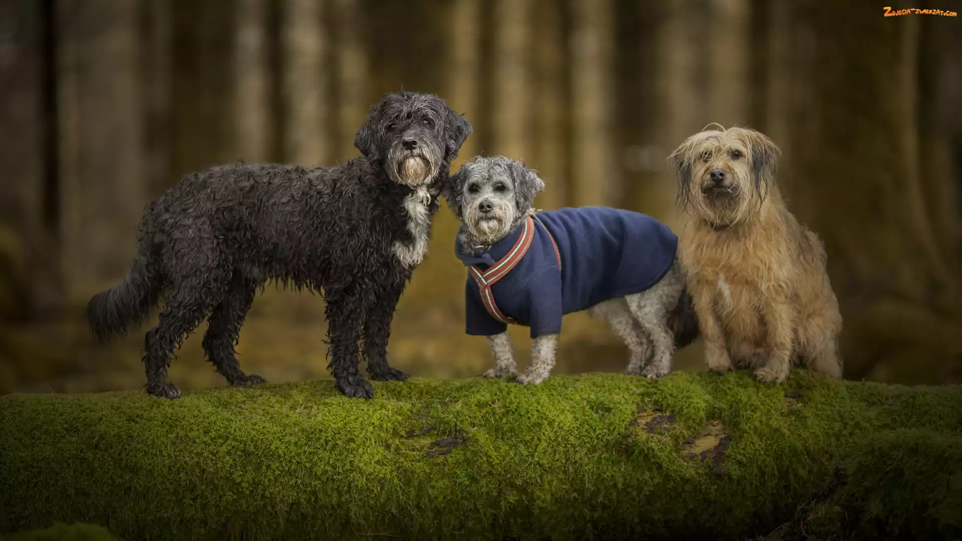 Zdjęcie: Mech, Drzewo, Psy, Trzy, Kundelki