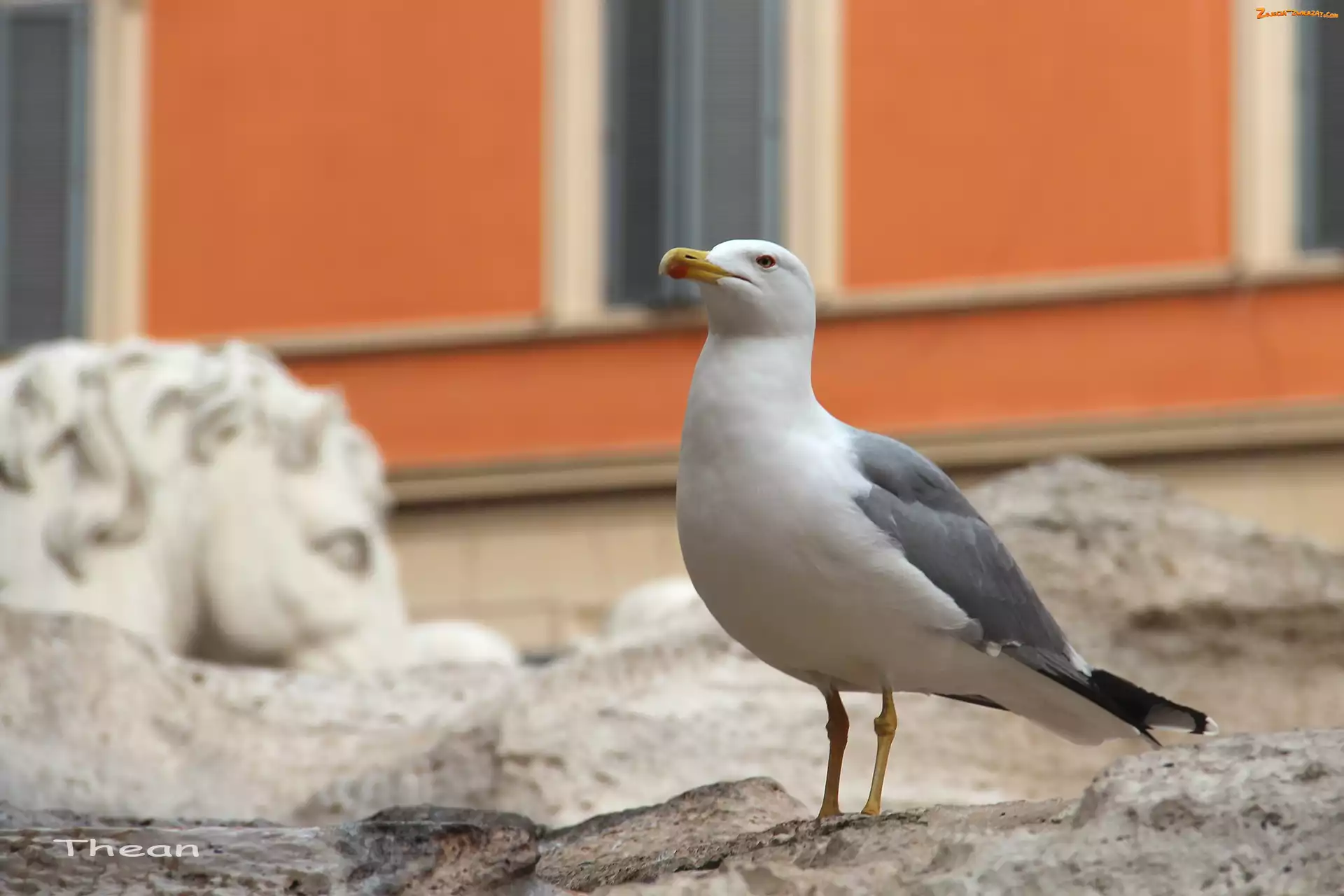 Zdjęcie: Mewa, Budynek, Ptak, Pomarańczowy