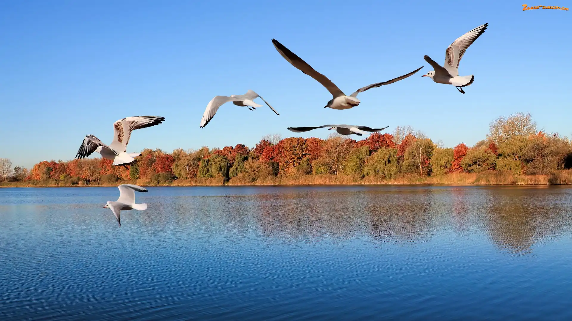 Zdjęcie: Drzewa, Mewy, Rzeka