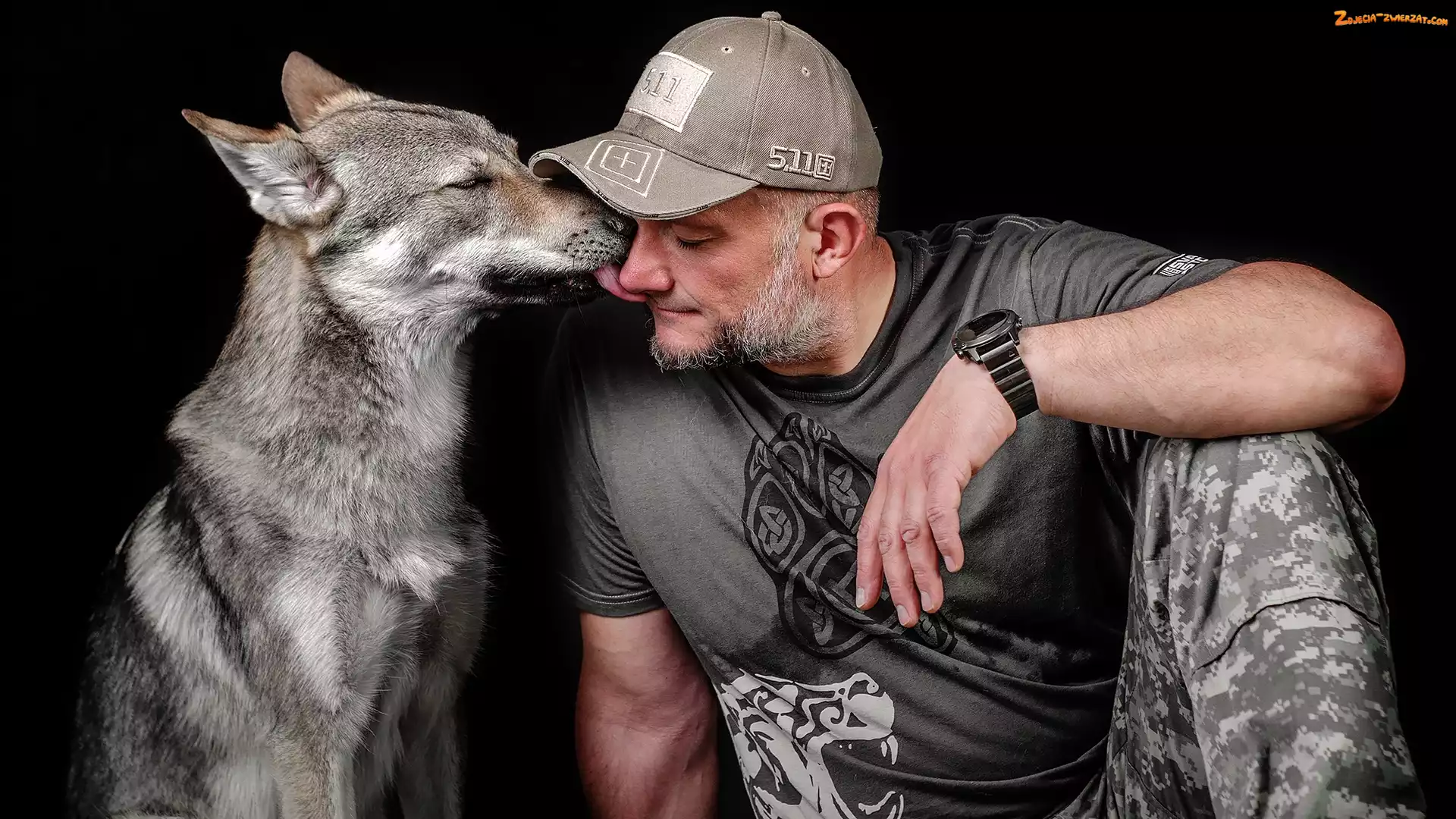Zdjęcie: Broda, Mężczyzna, Wilczak czechosłowacki, Pies, Czapka, Zegarek